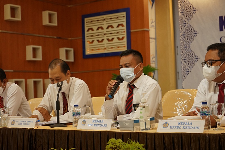 Kantor Pelayanan Pajak (KPP) Pratama Kendari bersama seluruh kantor perwakilan Kementerian Keuangan Provinsi Sulawesi Tenggara menghadiri Konferensi Pers Capaian APBN Akhir Tahun 2021 di aula Kanwil Direktorat Jenderal Perbendaharaan (DJPb) Provinsi Sulawesi Tenggara (Senin, 17/1).