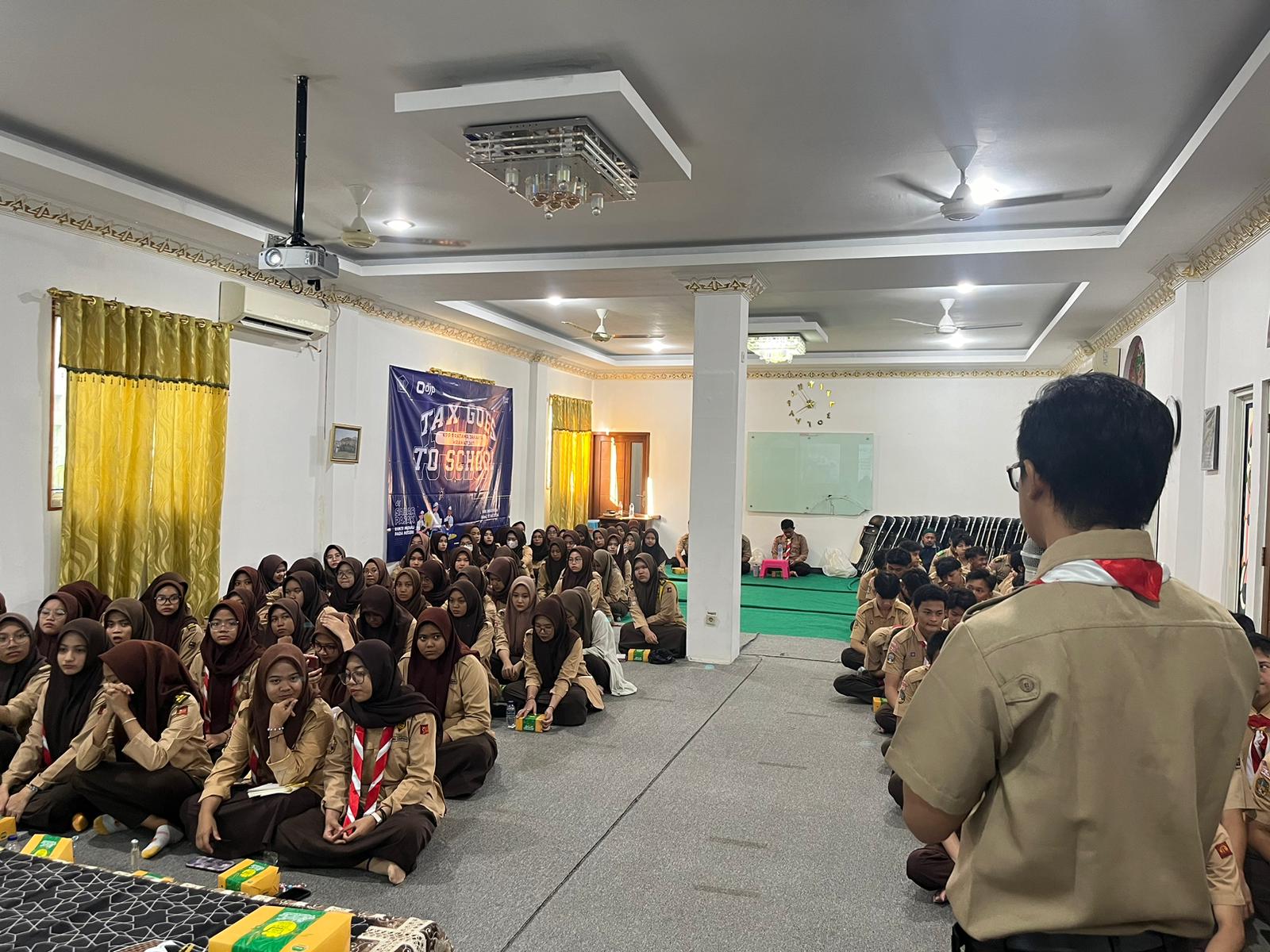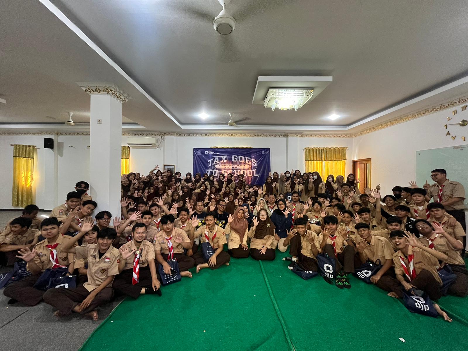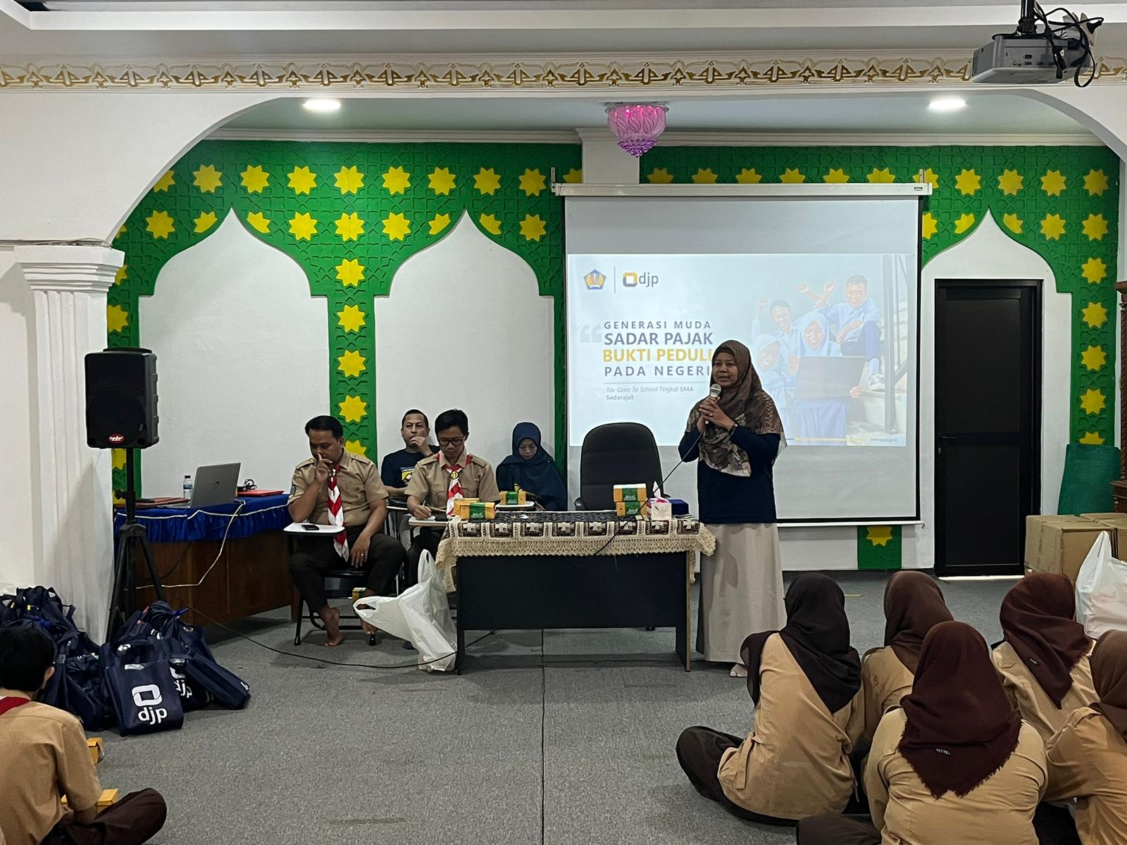Kantor Pelayanan Pajak (KPP) Pratama Jakarta Kramat Jati mengadakan kegiatan Tax Goes to School (TGTS) di Aula Sekolah Menengah Kejuruan (SMK) Mardhika Jalan Raya Condet, Cililitan, Kramat Jati, Jakarta Timur (Rabu, 17/7).