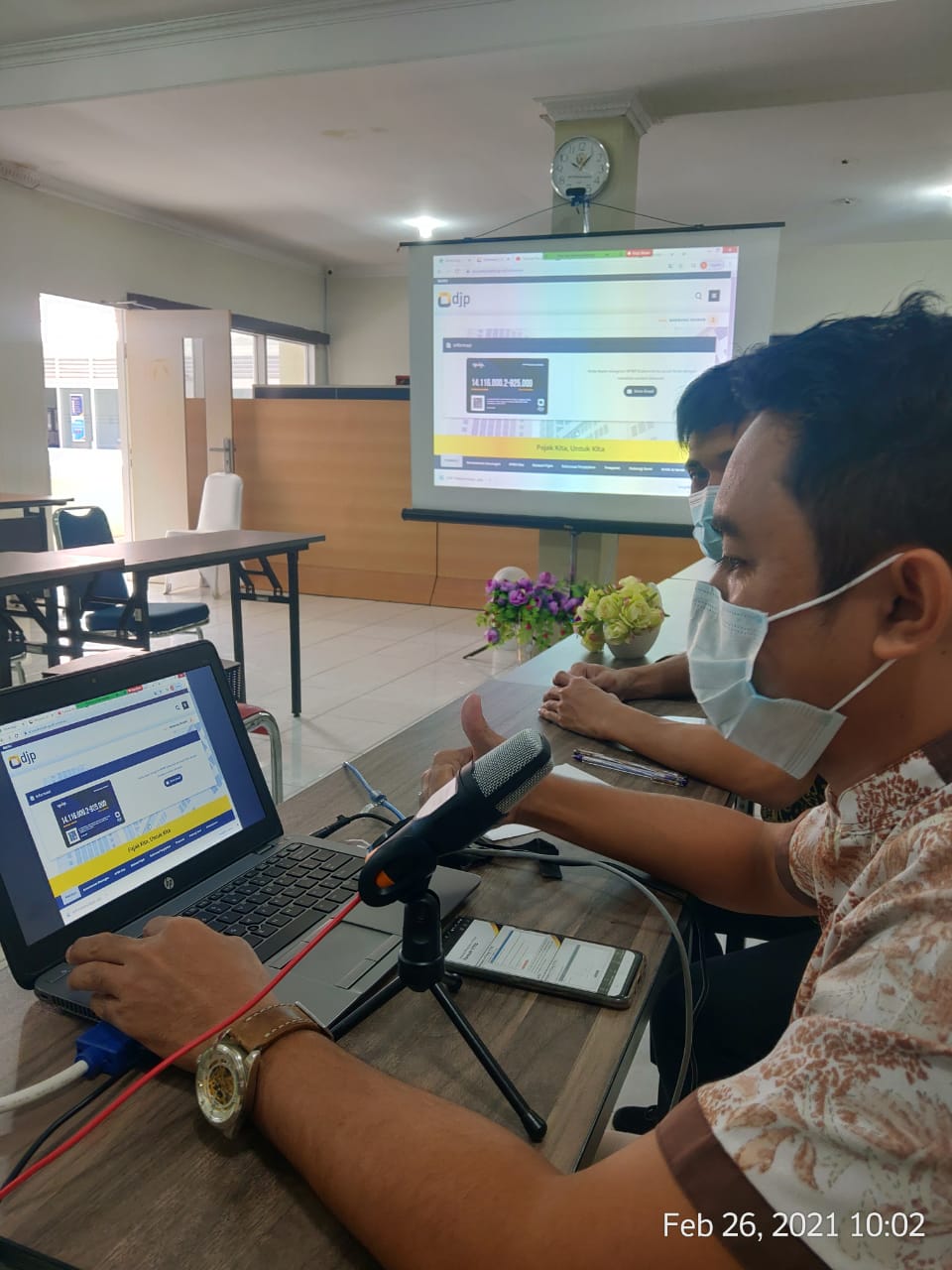 Narasumber menjelaskan materi mulai dari tata cara pembuatan akun djponline, aktivasi EFIN, dan tata cara pengisian SPT Tahunan pada laman www.pajak.go.id.