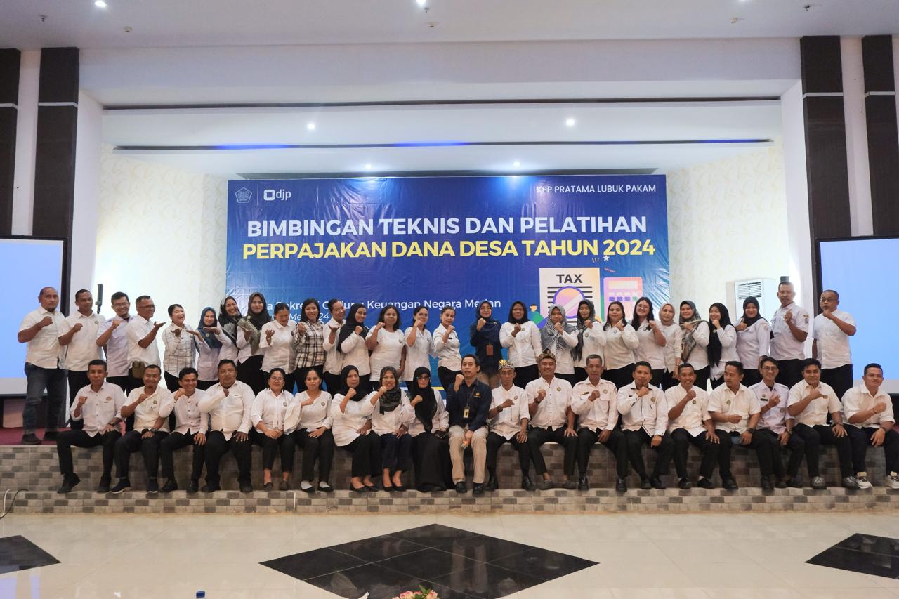 Kantor Pelayanan Pajak (KPP) Pratama Lubuk Pakam mengadakan Bimbingan Teknis (Bimtek) dan Pelatihan Perpajakan Dana Desa tahun 2024 di Aula Rekreasi Gedung Keuangan Negara Medan (Rabu, 15/5). Peserta Bimtek ini adalah perwakilan perangkat desa dari wilayah Kabupaten Deli Serdang, dengan tujuan meningkatkan pemahaman dan keterampilan dalam perpajakan dana desa.
