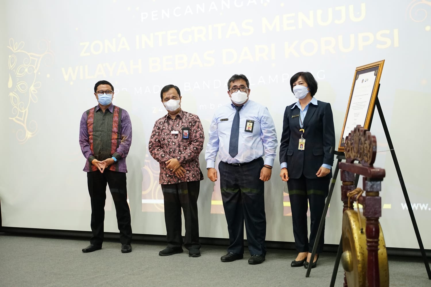 Puncak acara pencanangan ZI-WBK ditandai dengan pemukulan gong serta pembacaan dan penandatanganan pakta integritas dan komitmen pimpinan oleh Kepala KPP Madya Bandar Lampung. Tak hanya mendapat dukungan dari pemangku kepentingan dan wajib pajak, Kepala Kanwil DJP Bengkulu dan Lampung Tri Bowo juga memberikan dukungan kepada KPP Madya Bandar Lampung dalam pelaksanaan pembangunan ZI-WBK.