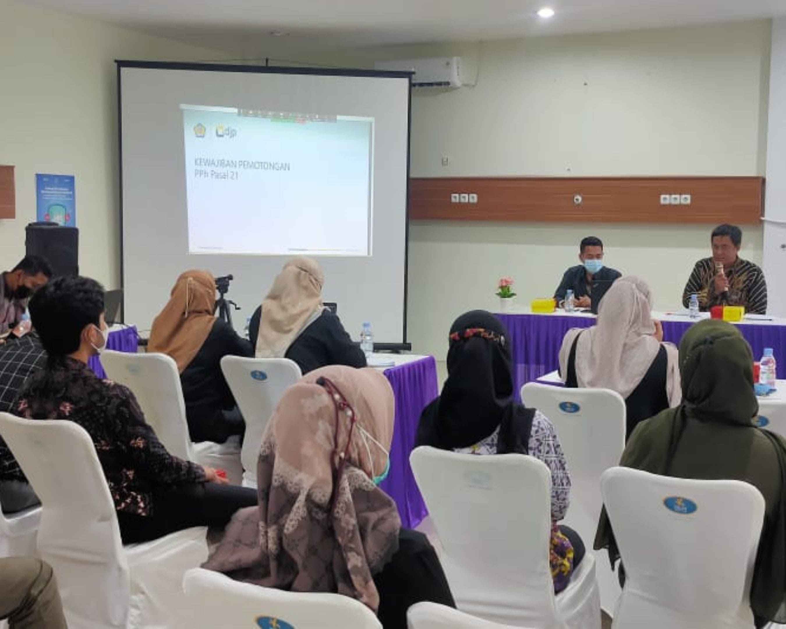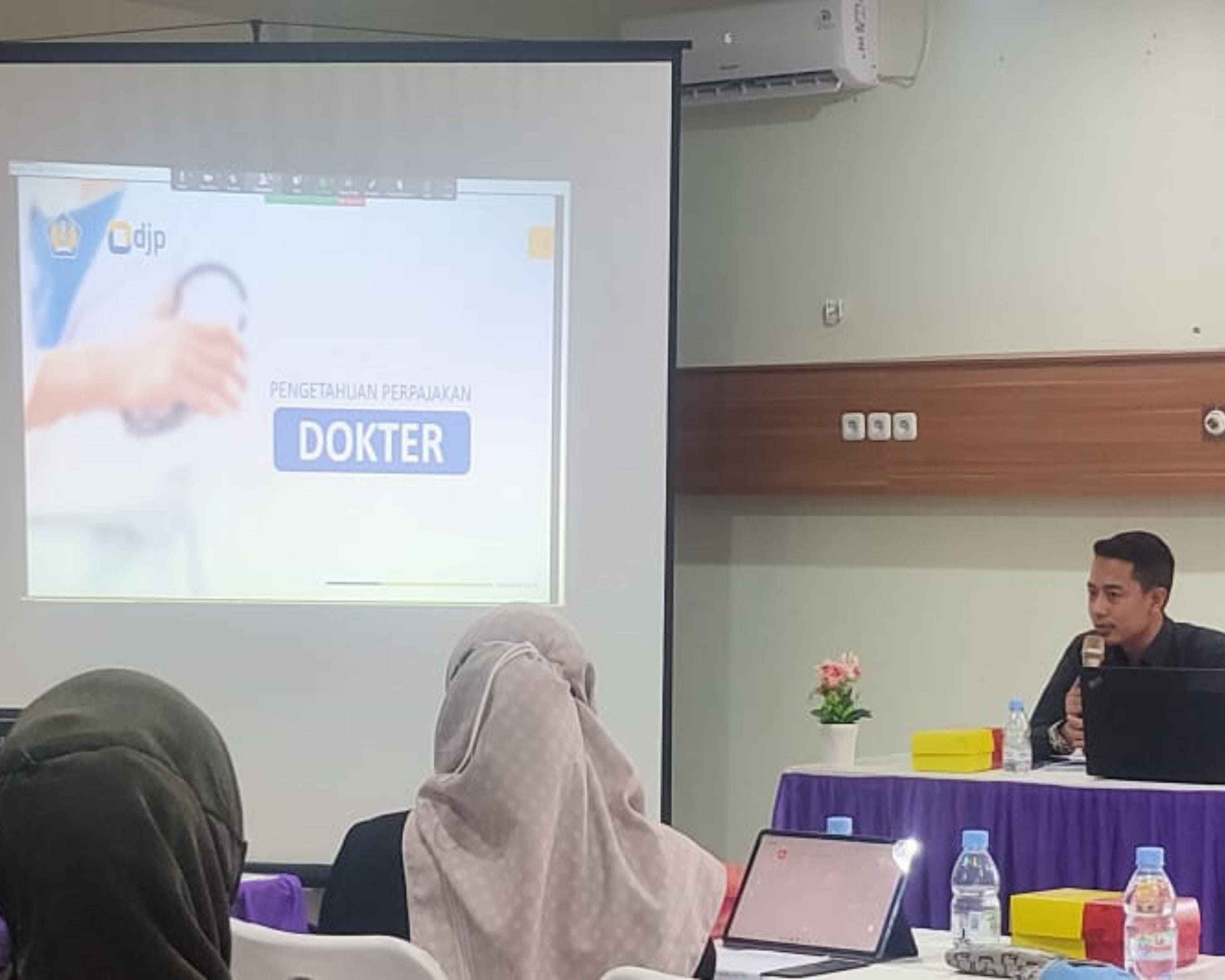 Kantor Pelayanan Pajak (KPP) Madya Banjarmasin menghadiri undangan sebagai narasumber dalam kegiatan sosialisasi Pajak Pemghasilan (PPh) Pasal 21 bagi dokter bertempat di Aula Rumah Sakit Umum (RSU) Syifa Medika, Kota Banjarbaru (Selasa, 27/9). Acara dimulai pukul 13.00 WITA dengan pembukaan oleh Direktur RSU Syifa Medika dr. Puga Sharaz Wangi yang menyambut positif kegiatan sosialisasi ini.