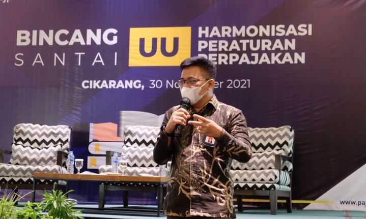 KPP Madya Bekasi melaksanakan kegiatan Edukasi Perpajakan dengan mengangkat materi Undang-Undang Harmonisasi Peraturan Perpajakan (UU HPP) di Holiday Inn Bekasi (Selasa, 30/11).