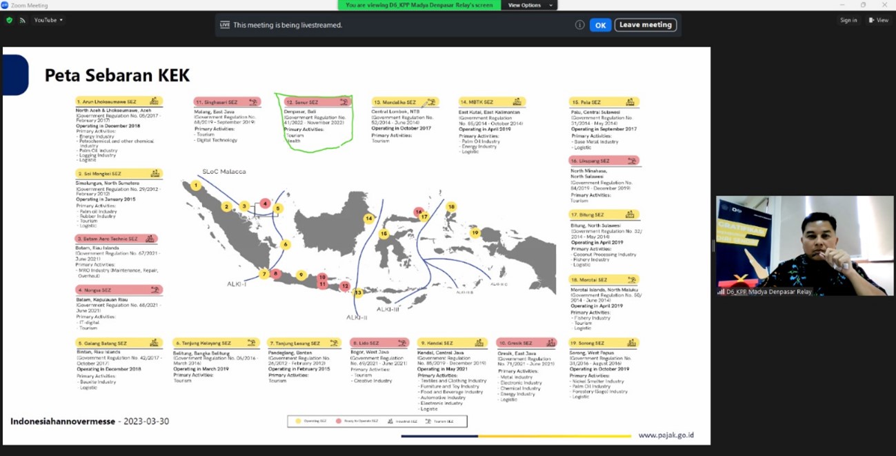 Fungsional Penyuluh Pajak Yohan Febrian menuturkan bahwa pemerintah Indonesia telah mengembangkan KEK di berbagai wilayah di seluruh Indonesia, termasuk di Bali. Yohan Febrian menambahkan bahwa untuk mendukung pengembangan KEK tersebut maka terdapat beberapa fasilitas perpajakan yang diberikan oleh pemerintah kepada Wajib Pajak (WP).