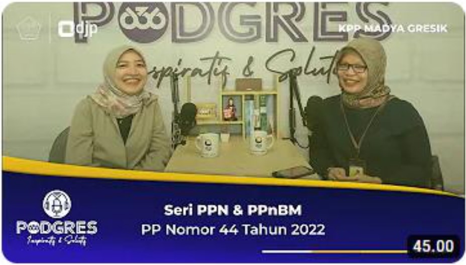Melalui ruang siniar KPP Madya Gresik, tepat pukul 13.00 WIB, Rizqi Fitriana sebagai pembawa acara menyapa wajib pajak “Assalamu’alaikum warahmatullahi wabarakatuh, selamat siang kawan pajak, bertemu kembali bersama kami Tim Penyuluh Pajak KPP Madya Gresik dalam episode 5 PODGRES, podcast KPP Madya Gresik, inspiratif dan solutif”. Rizqi tidak sendiri, siang itu ditemani oleh Zakiah, sebagai narasumber. Keduanya adalah Penyuluh Pajak Ahli Muda KPP Madya Gresik.