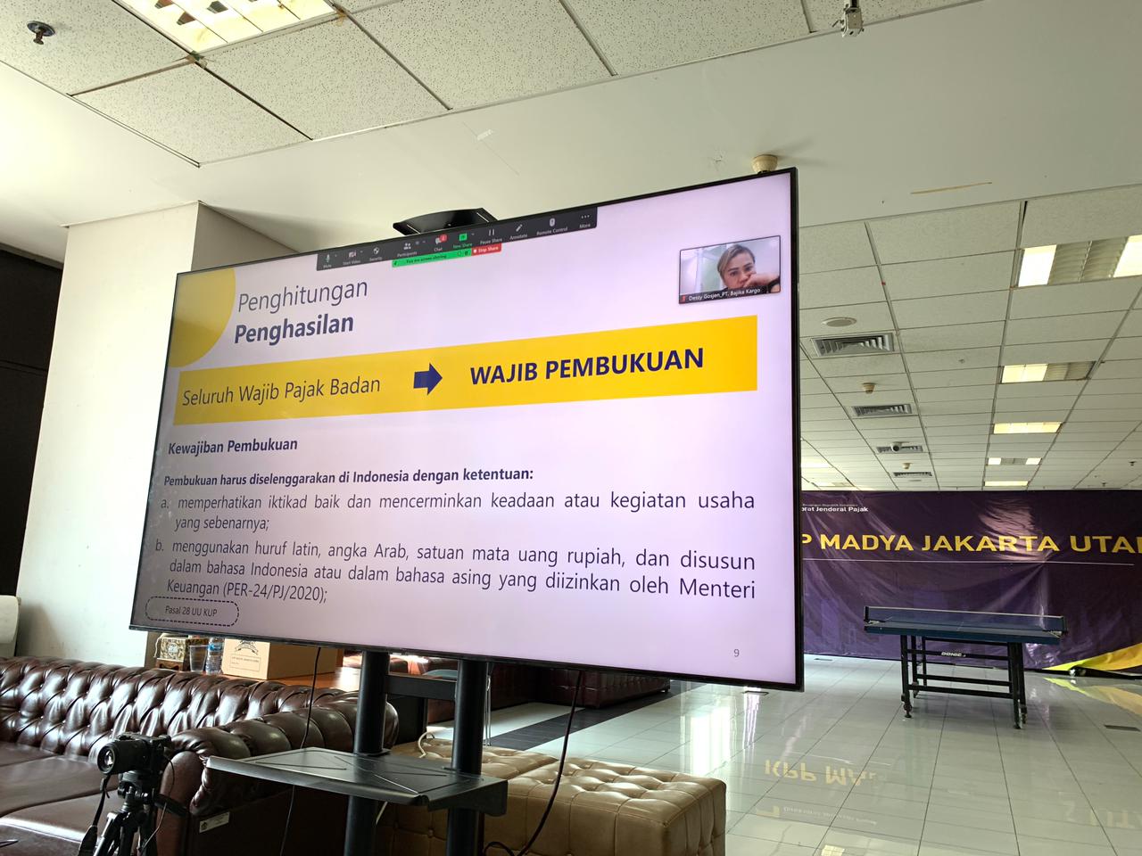 Kantor Pelayanan Pajak (KPP) Madya Jakarta Utara menggelar kelas pajak mengenai penyampaian SPT Tahunan untuk Wajib Pajak Badan yang dilaksanakan secara daring melalui aplikasi Zoom Meeting di Jakarta (Selasa, 27/4). Penyelenggaraan kelas pajak ini dipandu oleh Fungsional Penyuluh KPP Madya Jakarta Utara.