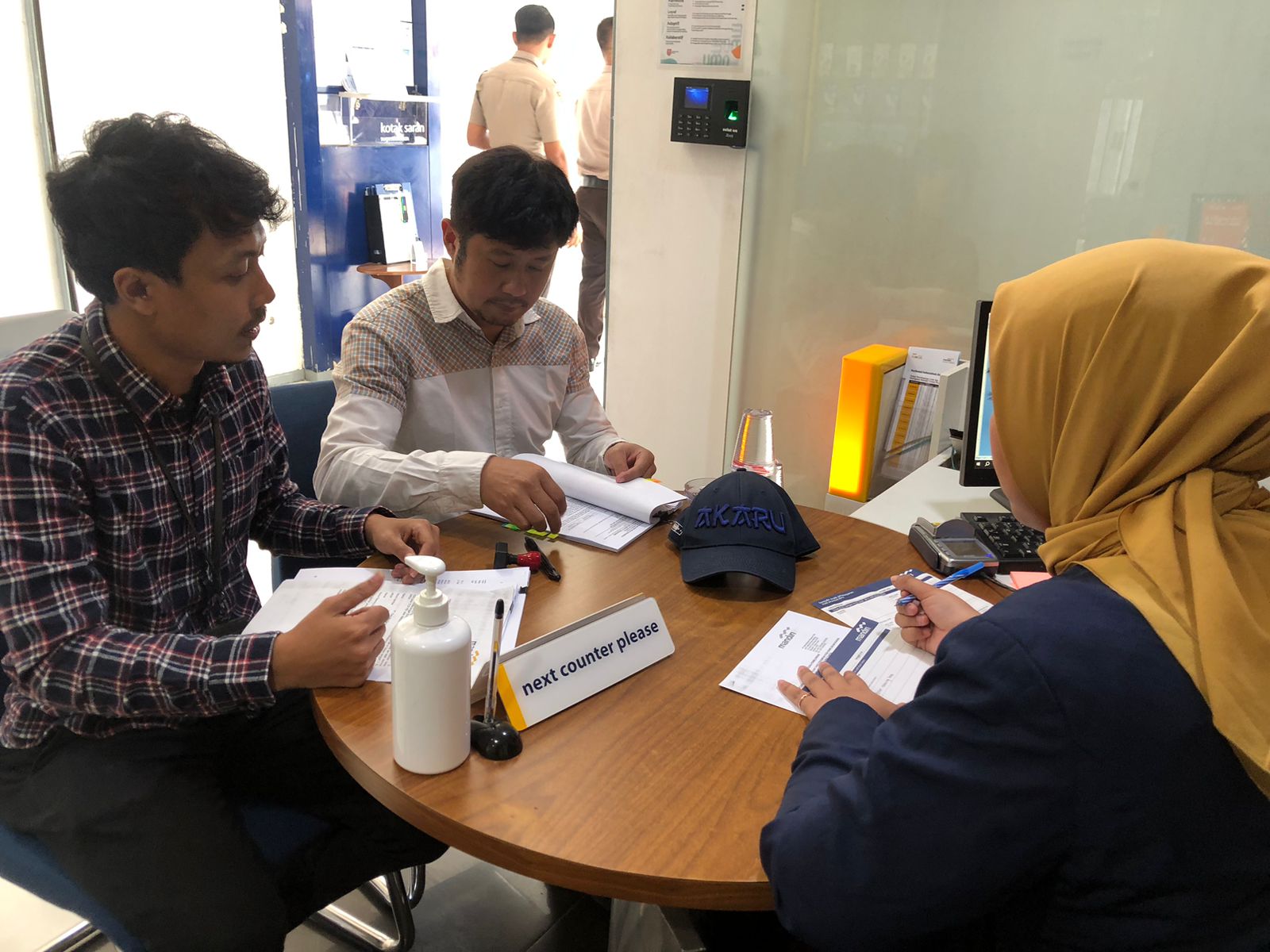 Juru Sita Kantor Pelayanan Pajak (KPP) Madya Tangerang melakukan proses penyitaan salah satu rekening atas nama wajib pajak yang menunggak pembayaran ketetapan pajak pada Bank Mandiri cabang Jakarta Rawa Belong di Kecamatan Kebon Jeruk, Jakarta Barat, DKI Jakarta (Kamis, 14/9).