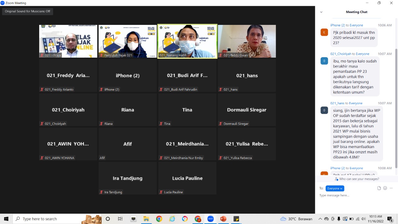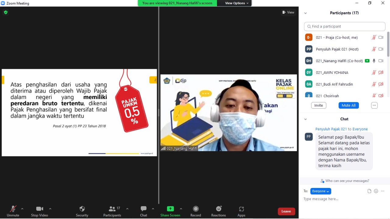 KPP Pratama Jakarta Menteng Satu mengadakan kelas pajak online terkait kewajiban perpajakan bagi pelaku usaha UMKM di Jakarta (Rabu, 16/11).