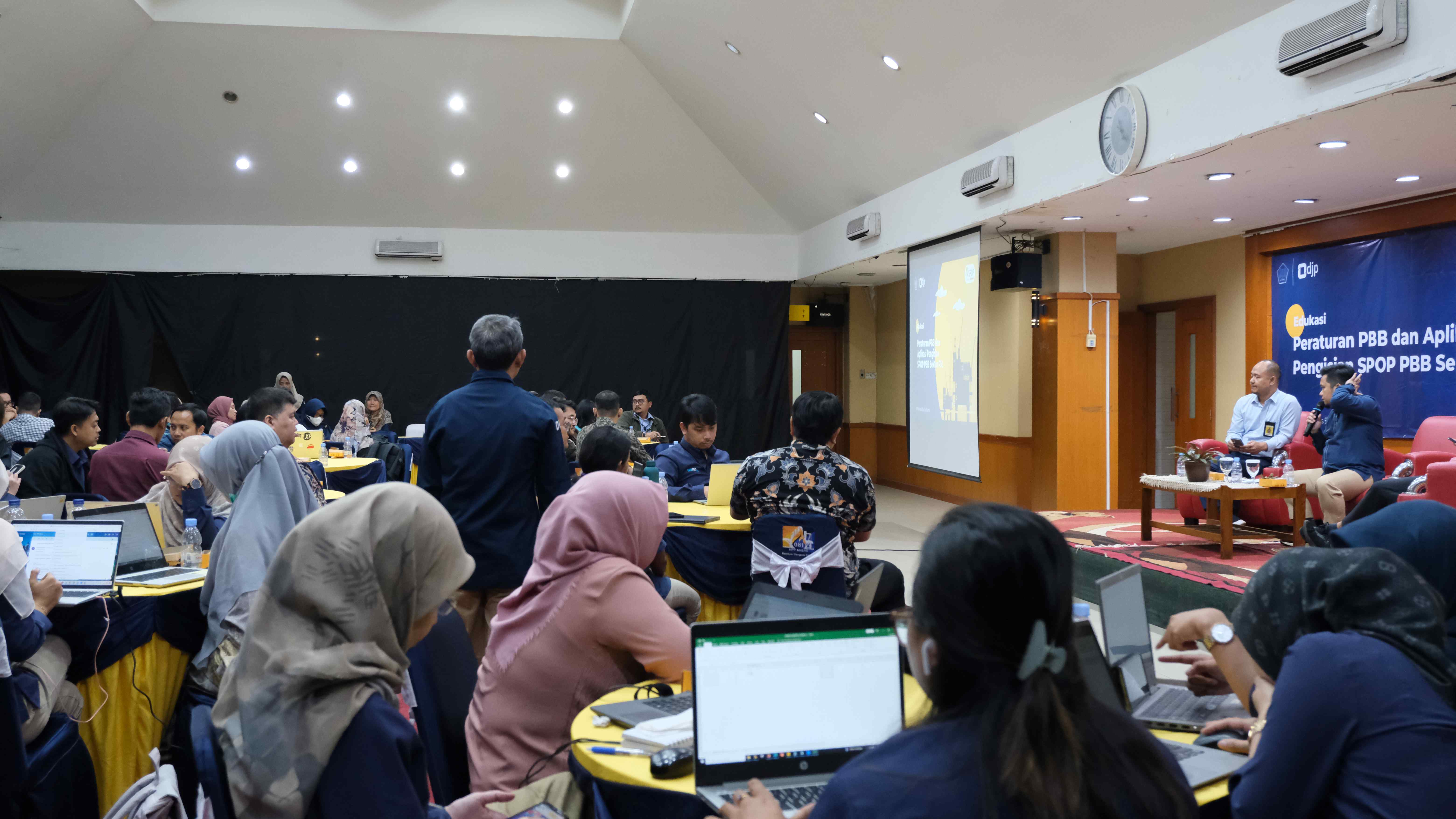 Kegiatan edukasi ini dipandu langsung oleh Fungsional Penilai Pajak KPP Joni Erwin Tampubolon sebagai moderator. Sementara itu, materi edukasi disampaikan oleh Kepala Seksi Peraturan PBB III, Fathoni Ariyanto dan Fungsional Penilai Pajak Direktorat Ekstensifikasi dan Penilaian, Sandra Hasta Prasetio.