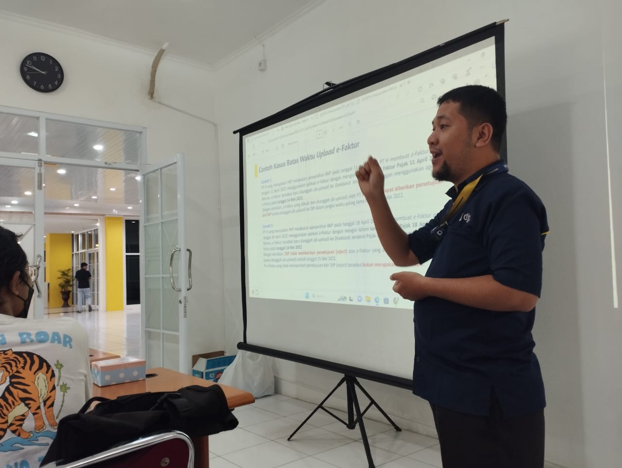 Kantor Pelayanan Pajak (KPP) Pratama Palembang Seberang Ulu mengadakan kegiatan Bimbingan Teknis (Bimtek) aplikasi e-Faktur di Ruang Kelas Pajak KPP Pratama Palembang Seberang Ulu, Kota Palembang (Kamis, 3/8). Kegiatan Bimtek yang dipandu oleh Fungsional Penyuluh KPP Pratama Palembang Seberang Ulu ini diikuti oleh Pengusaha Kena Pajak (PKP) di wilayah kerja KPP Pratama Palembang Seberang Ulu.