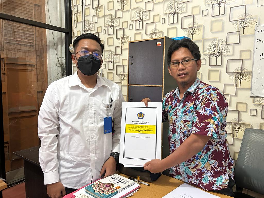 Kantor Pelayanan Pajak (KPP) Pratama Palu melakukan kunjungan ke lokasi usaha Wajib Pajak Badan di Kelurahan Birobuli Selatan, Kecamatan Palu Selatan, Kota Palu, Sulawesi Tengah (Senin, 7/8). Kunjungan ini dilakukan dalam rangka penelitian lapangan sebagai tindak lanjut dari permohonan aktivasi akun Pengusaha Kena Pajak (PKP). Petugas Pajak Palu Ridha Arum dan Dwi Kurniawan bertemu dengan Muhammad Tahir selaku Direktur dari PT Izzan Putra Mandala.