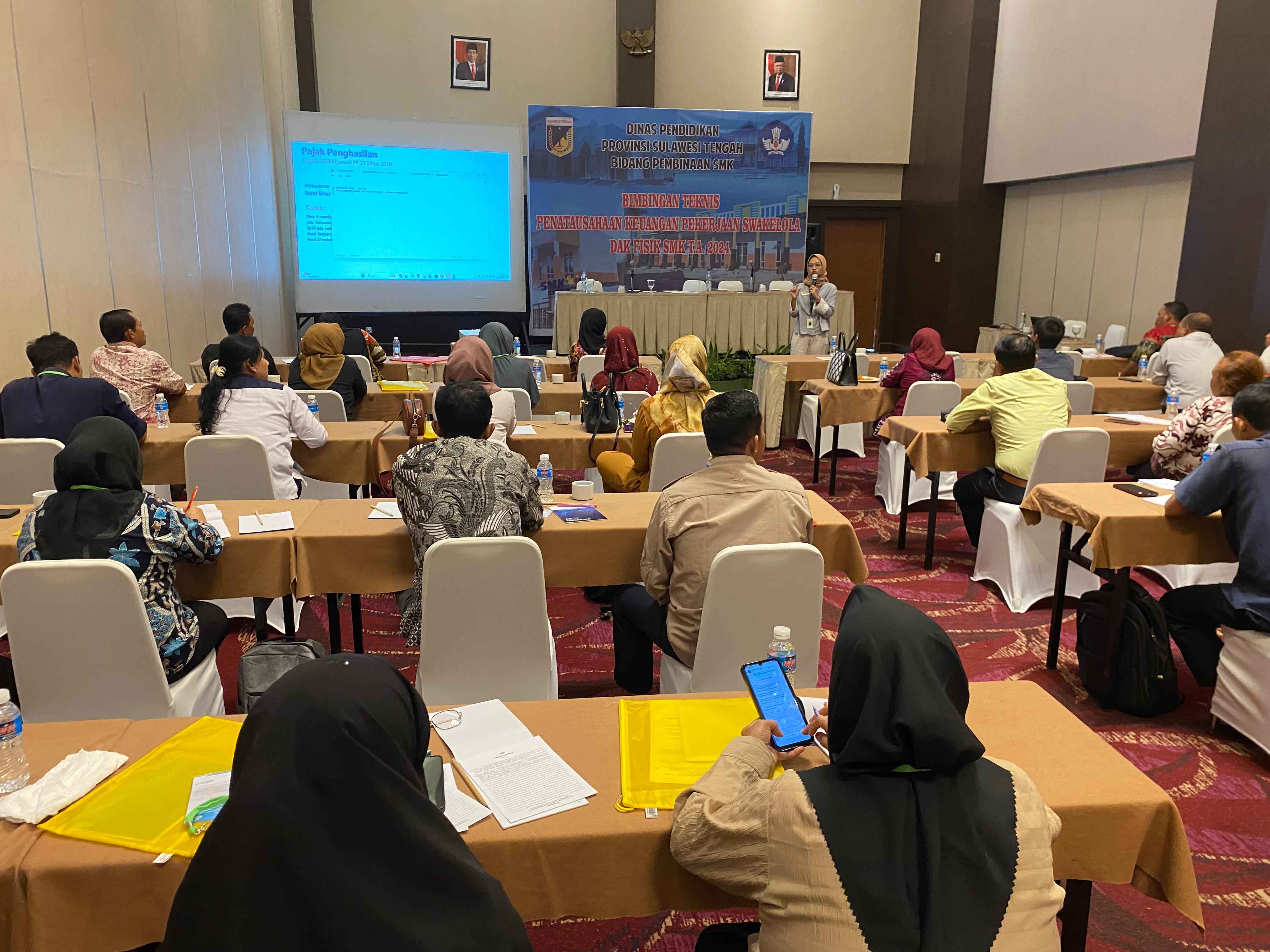 Kantor Pelayanan Pajak (KPP) Pratama Palu memenuhi undangan sosialisasi dari Dinas Pendidikan Provinsi Sulawesi Tengah (Selasa, 4/6). Kegiatan ini berlangsung pada pukul 10.00 WITA di Hotel Santika, Kota Palu, Sulawesi Tengah. Sosialisasi ini dihadiri oleh kepala sekolah, bendahara, dan operator dari SMK Negeri maupun Swasta di Sulawesi Tengah.