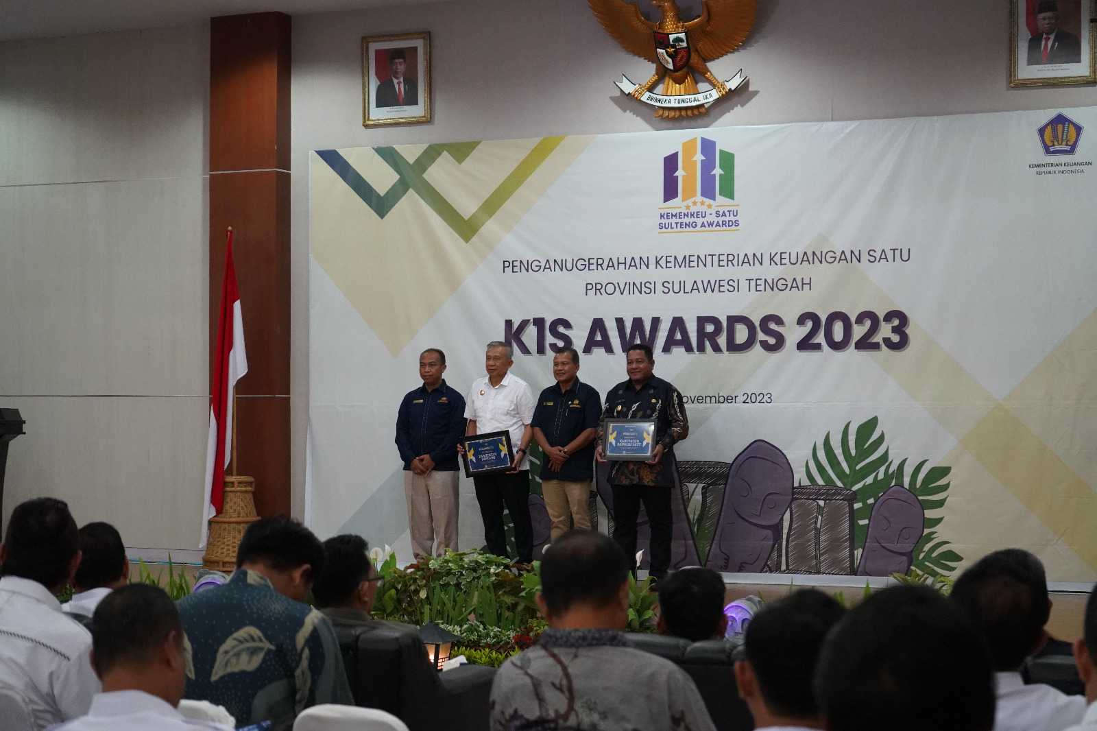Kantor Pelayanan Pajak (KPP) Pratama Palu dan seluruh Unit Vertikal Kementerian Keuangan Provinsi Sulawesi Tengah turut menghadiri acara Penganugerahan Kementerian Keuangan Satu Sulawesi Tengah (K1S Awards) di Gedung Pogombo Kantor Gubernur Sulawesi Tengah (Rabu, 15/11).