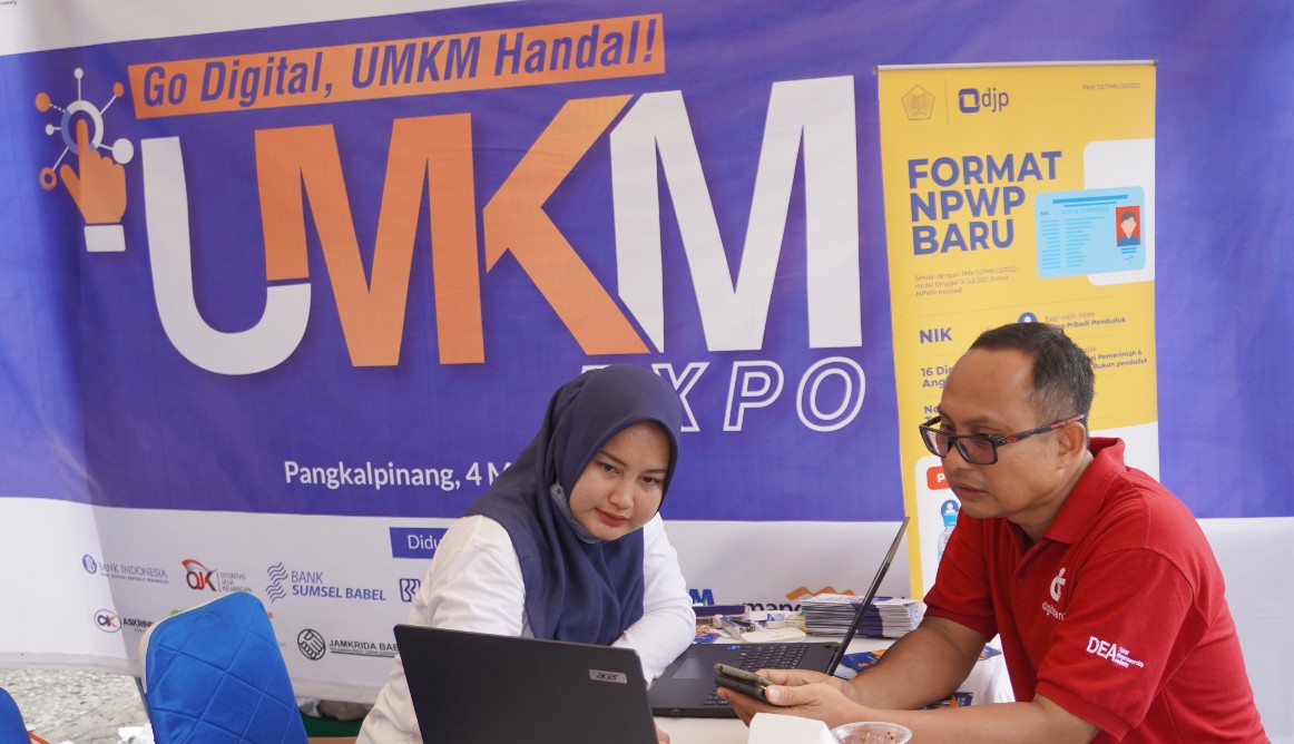 Pojok layanan diadakan untuk memeriahkan acara UMKM EXPO tahun 2023 di Kota Pangkalpinang.
