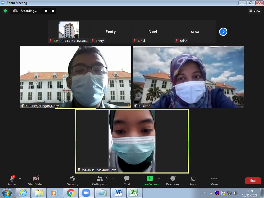Kantor Pelayanan Pajak (KPP) Pratama Jakarta Penjaringan melaksanakan sosialisasi Prepopulated PEB dan CK-1 tembakau secara daring, Jakarta Utara (Kamis, 18/11). Materi disampaikan oleh Dony Katra Lubis, Penyuluh Pajak KPP Pratama Jakarta Penjaringan. Kegiatan ini diikuti oleh 11 wajib pajak.