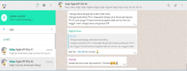 Mewakili Kepala KPP Pratama Jakarta Pesangrahan, Kepala Seksi Ekstensifikasi dan Penyuluhan Satya Darmawan menyatakan Edukasi diselenggarakan dengan menggunakan media sosial via WhatsApp. Sebelumnya peserta kegiatan diundang dalam grup WhatsApp untuk memudahkan dalam koordinasi kegiatan. Pelaksanaan acara dimulai dengan pengantar oleh admin dan penjelasan materi oleh Account Representative. WhatsApp dipilih dengan pertimbangan keamanan data pengguna dan peserta telah sangat terbiasa menggunakan aplikasi ini dengan mudah.