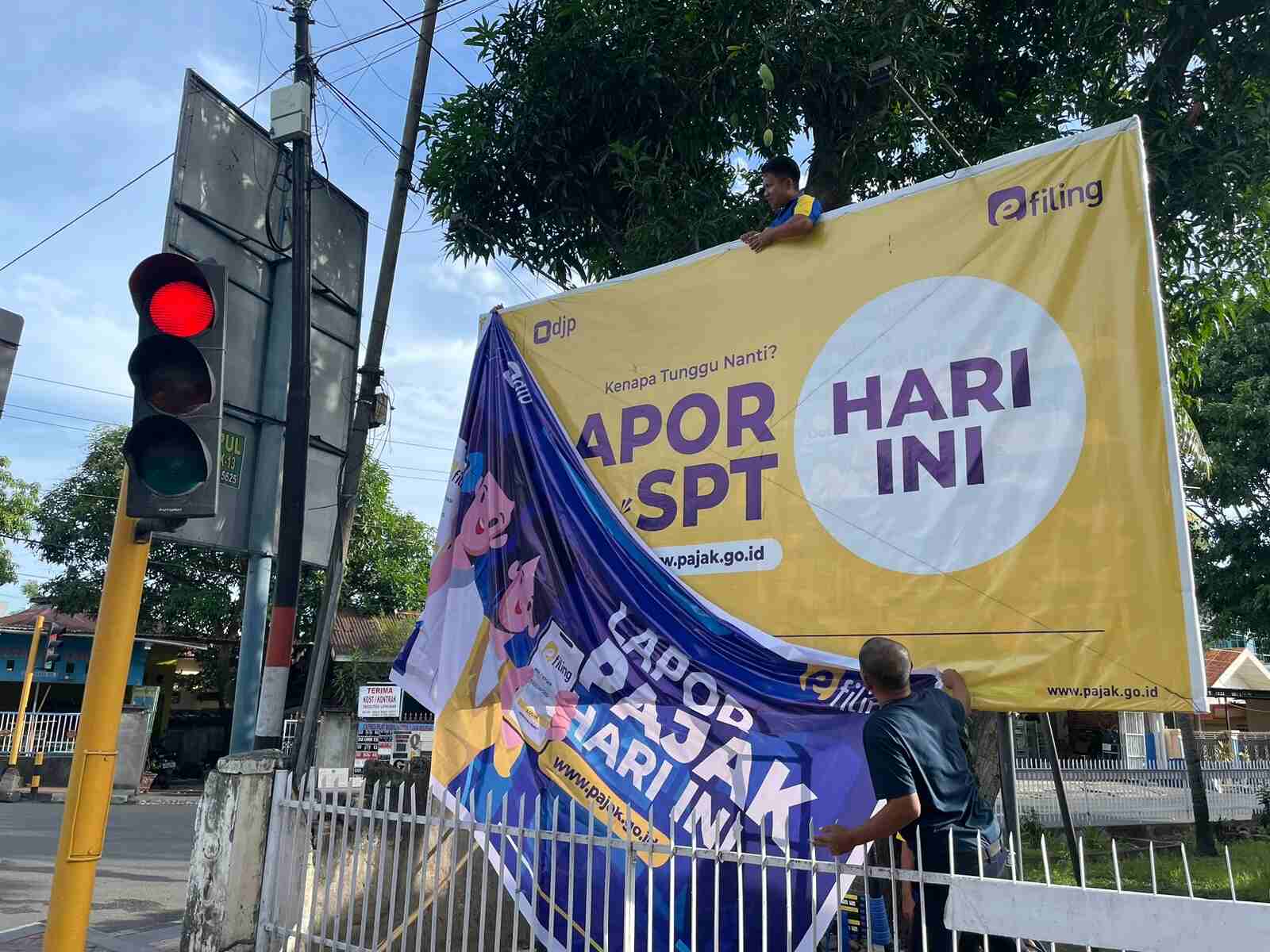 Kegiatan pemasangan spanduk dilaksanakan di beberapa lokasi seperti jalan raya, komplek kantor pemerintahan, pusat wisata, dan tempat lainnya. Dengan adanya upaya ini diharapkan dapat mengingatkan wajib pajak akan kewajiban perpajakannya terkait pelaporan SPT Tahunan.