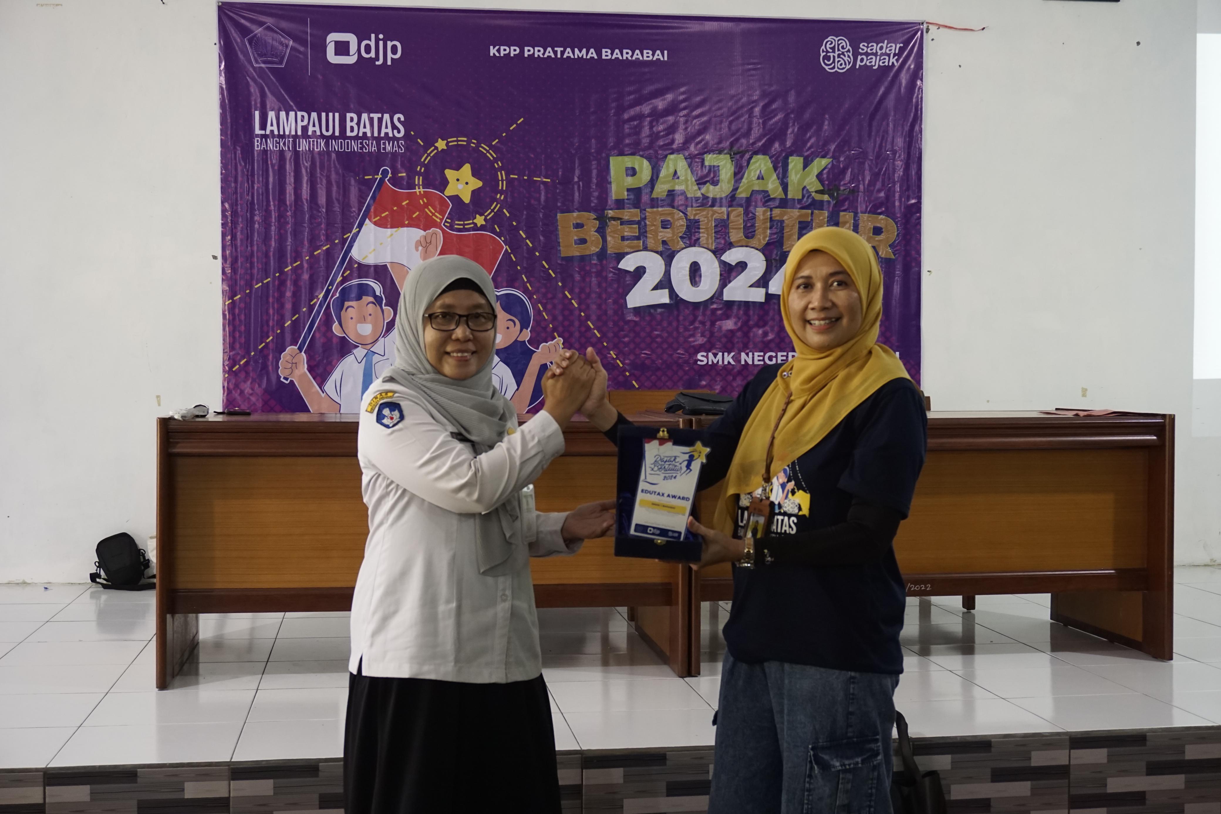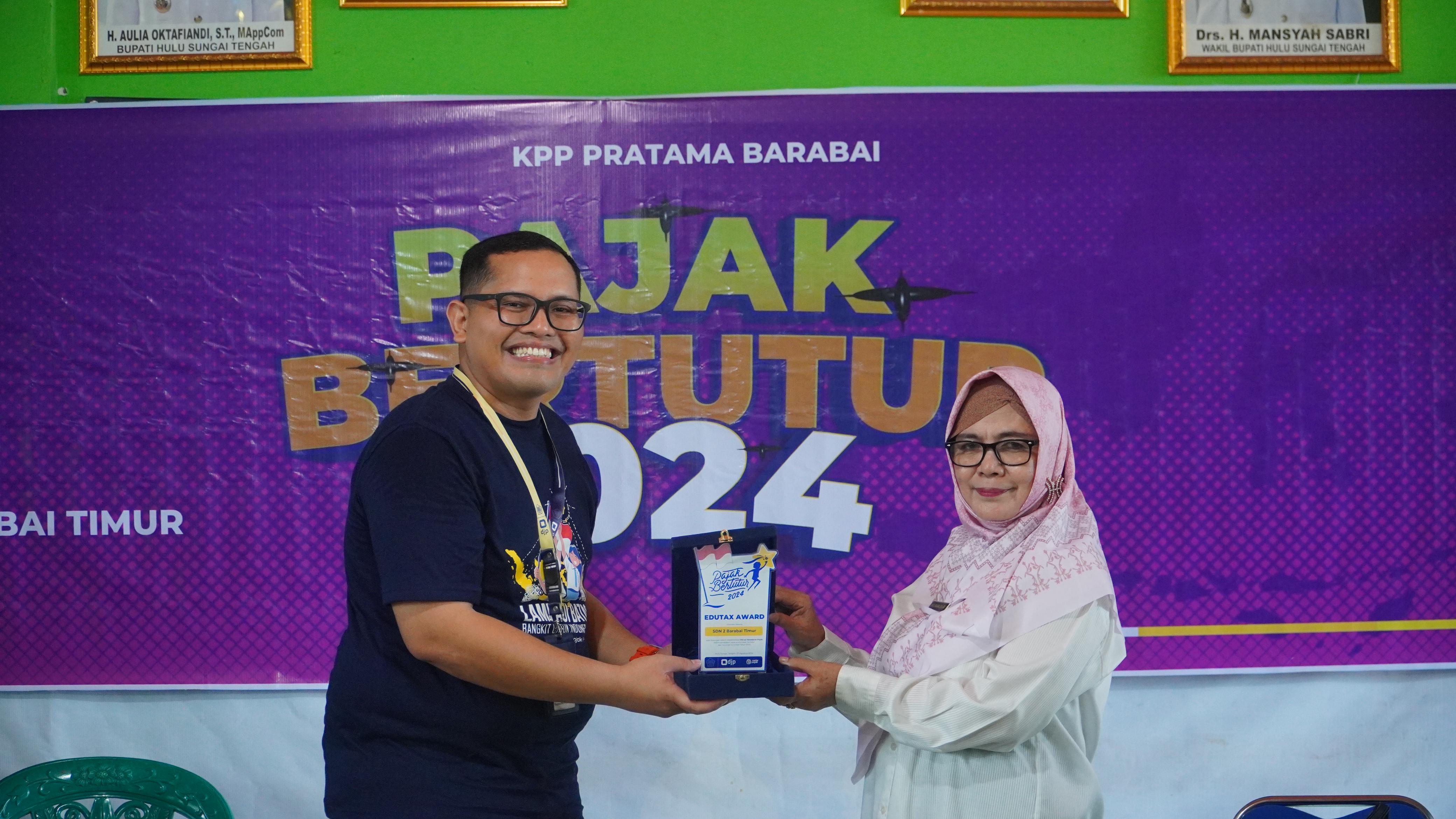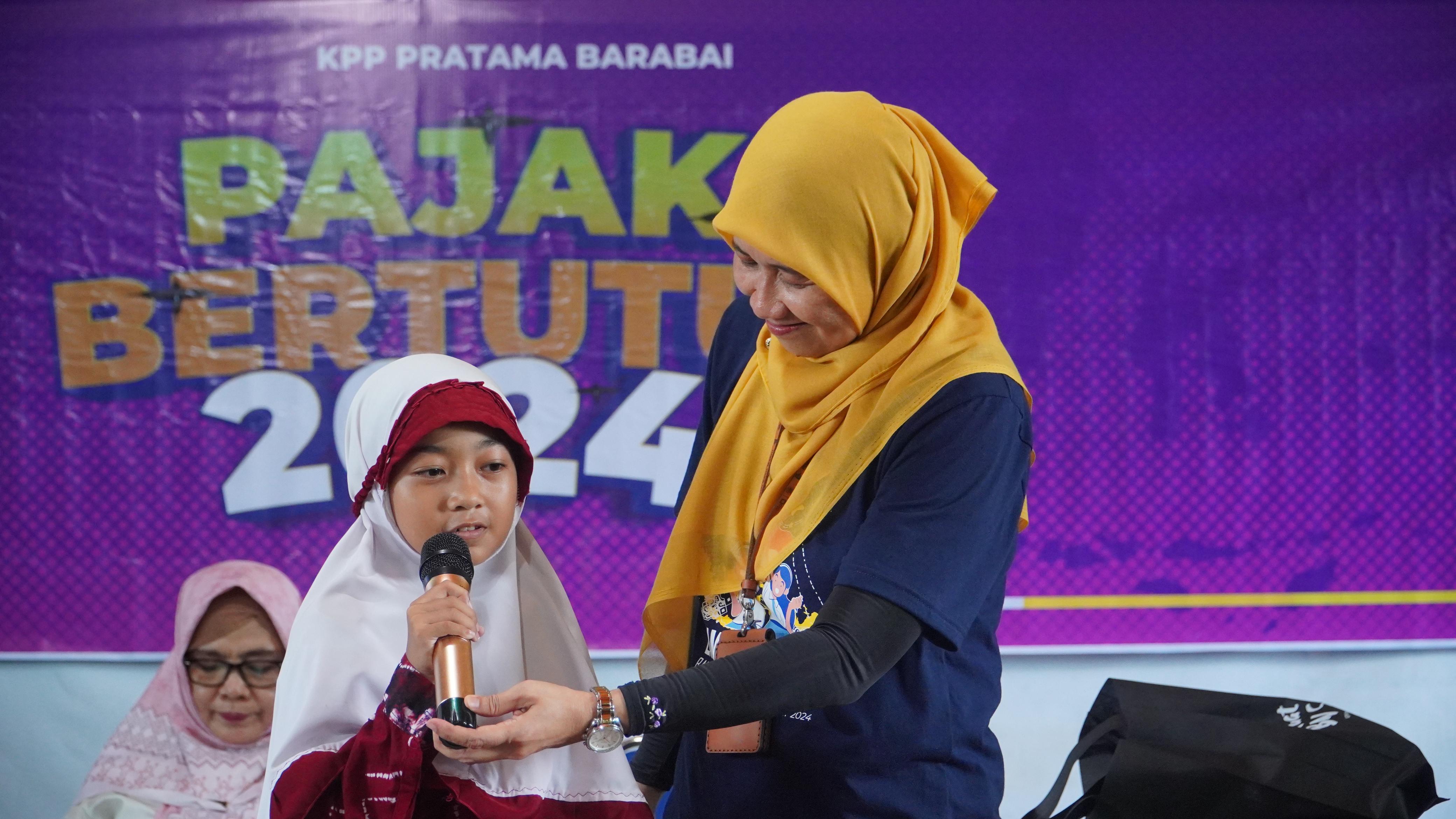 Kantor Pelayanan Pajak (KPP) Pratama Barabai menggelar kegiatan Pajak Bertutur 2024 serentak di beberapa sekolah di wilayah Barabai, Hulu Sungai Tengah (Rabu,7/8). Beberapa sekolah dipilih untuk menjadi tempat diselenggarakannya Pajak Bertutur 2024 di wilayah KPP Pratama Barabai antara lain Sekolah Menengah Kejuruan (SMK) Negeri 1 Barabai, Sekolah Menengah Pertama (SMP) Negeri 3 Hulu Sungai Tengah, dan Sekolah Dasar (SD) Negeri 2 Barabai Timur, yang dilaksanakan di tempat yang terpisah di masing-masing sekolah.