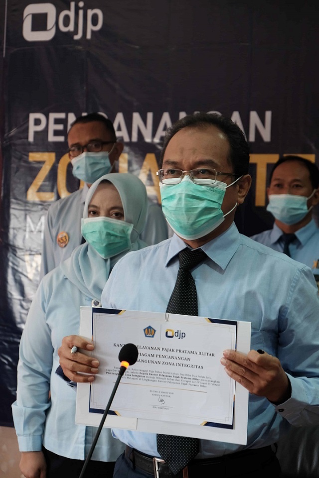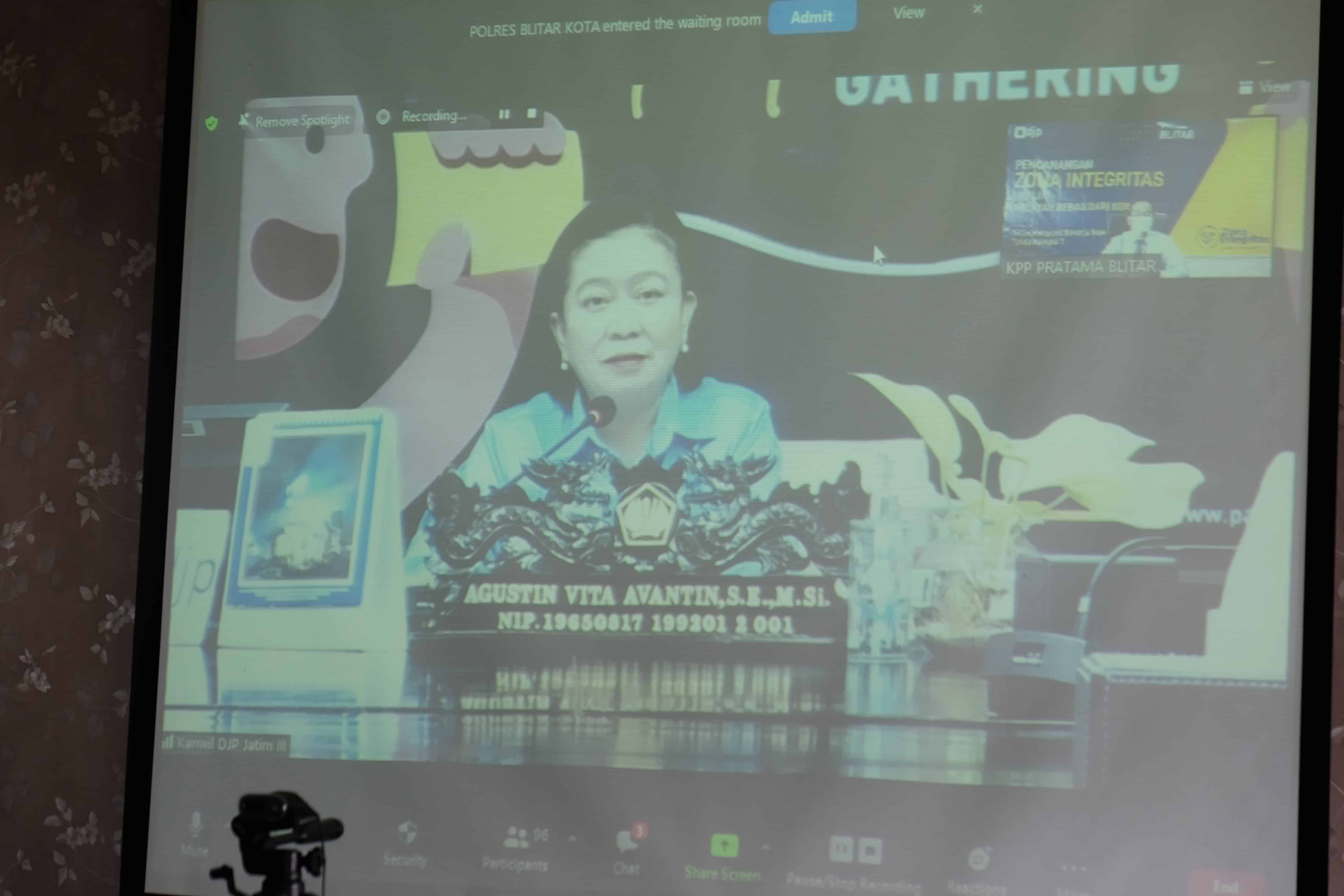 Kantor Pelayanan Pajak (KPP) Pratama Blitar melakukan kegiatan pencanangan Zona Integritas menuju Wilayah Bebas dari Korupsi dan Wilayah Birokrasi Bersih Melayani melalui media aplikasi Zoom Meeting di Blitar (Rabu, 3/3).