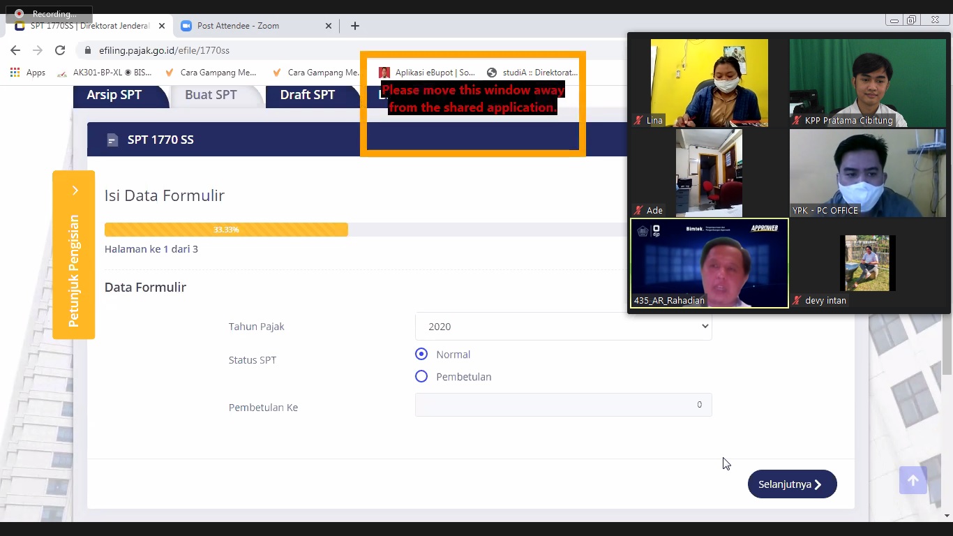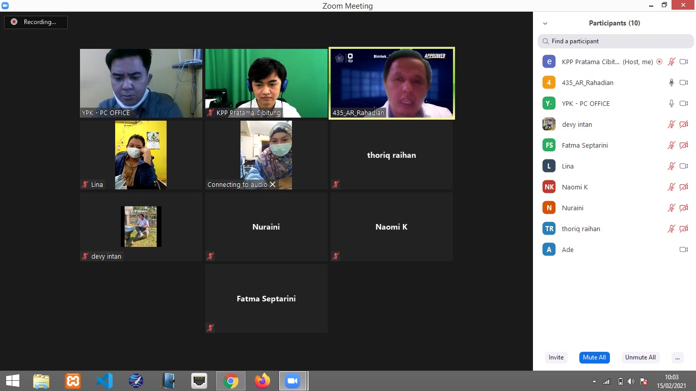 Kantor Pelayanan Pajak (KPP) Pratama Cibitung menyelenggarakan kelas pajak untuk meningkatkan kepatuhan dan pengetahuan wajib pajak mengenai cara pelaporan SPT Tahunan Pajak Penghasilan yang dilaksanakan secara daring melalui aplikasi Zoom Meeting di Cibitung, Bekasi (Selasa, 23/2).