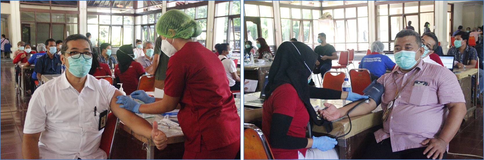 Diawali dengan pembagian nomor antrean, setiap pegawai mengisi data diri pada formulir yang disediakan. Selanjutnya pegawai yang dipanggil menuju petugas registrasi. Kemudian dilakukan pengecekan kondisi pegawai dan tahap berikutnya dilakukan vaksinasi. Pada bagian akhir, pegawai menunggu selama kurang lebih tiga puluh menit untuk mengidentifikasi gejala yang timbul sekaligus menunggu surat keterangan hasil vaksinasi.