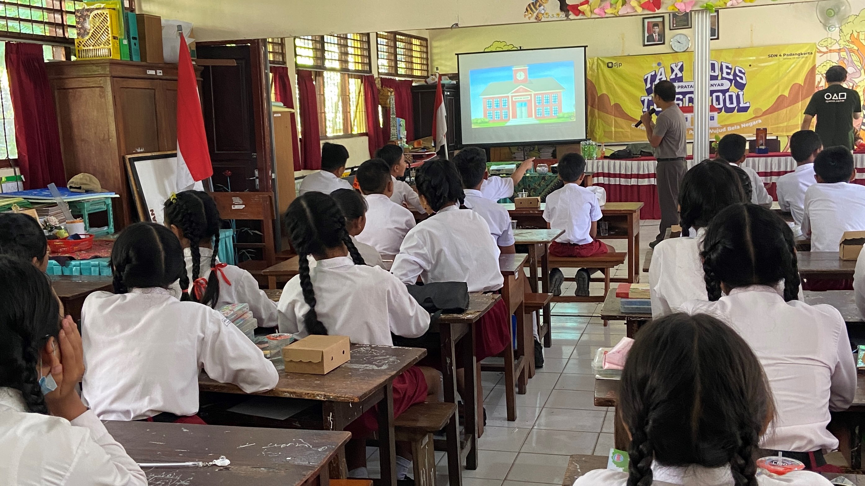 Acara dibuka secara resmi oleh Kepala KP2KP Amlapura, Richardus Patmodjo Hernugroho. I Wayan Sarja selaku kepala sekolah SD Negeri 4 Padangkerta mengucapkan terima kasih kepada tim dari KPP Pratama Gianyar dan KP2KP Amlapura yang diharapkan bisa menyampaikan pentingnya pajak sejak dini kepada siswa siswi mereka.