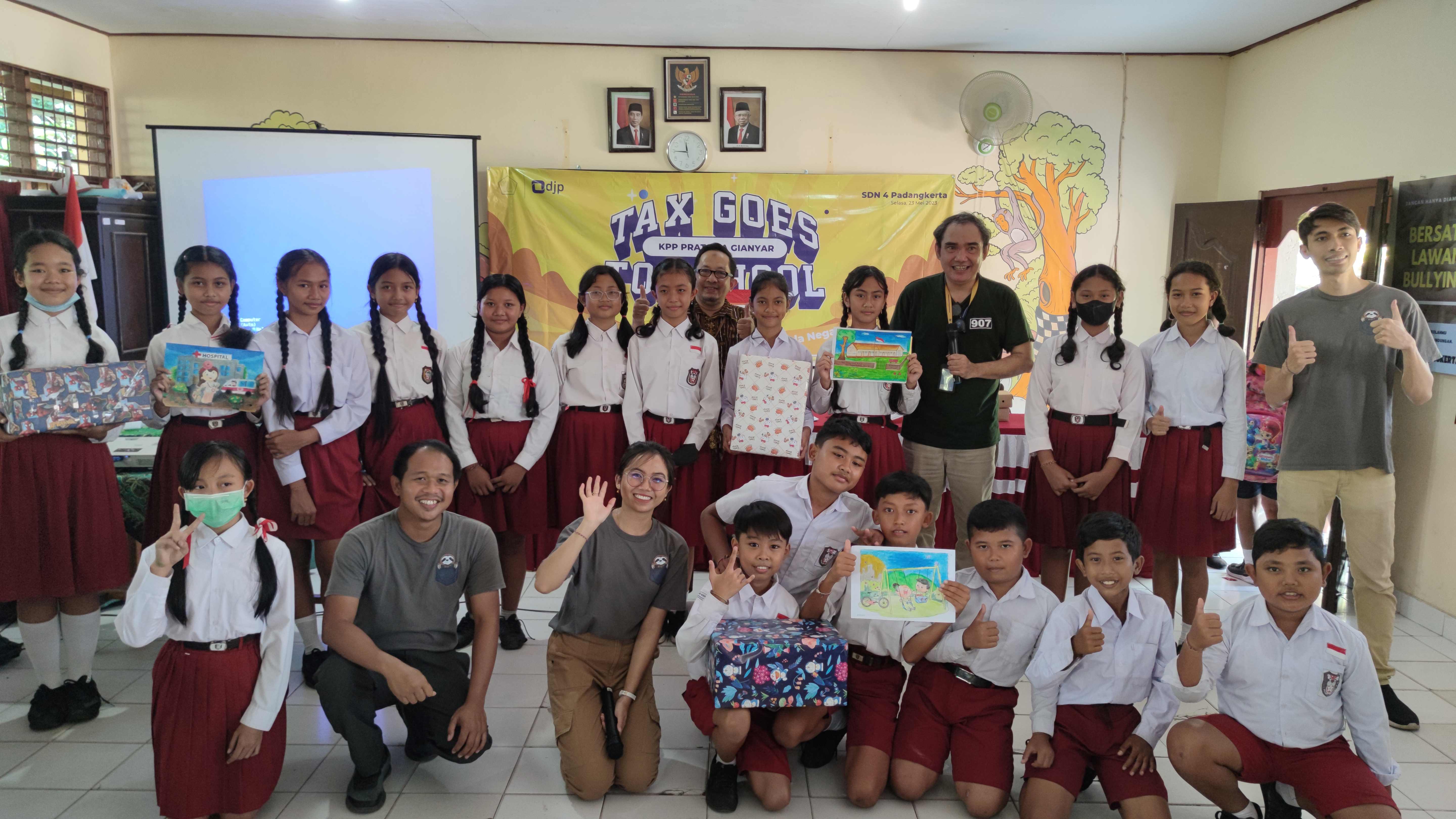 Kegiatan ini bertujuan untuk meningkatkan kesadaran pajak bagi generasi penerus bangsa. Sebanyak 56 siswa siswi SD Negeri 4 Padangkerta mengikuti TGTS tahun ini.