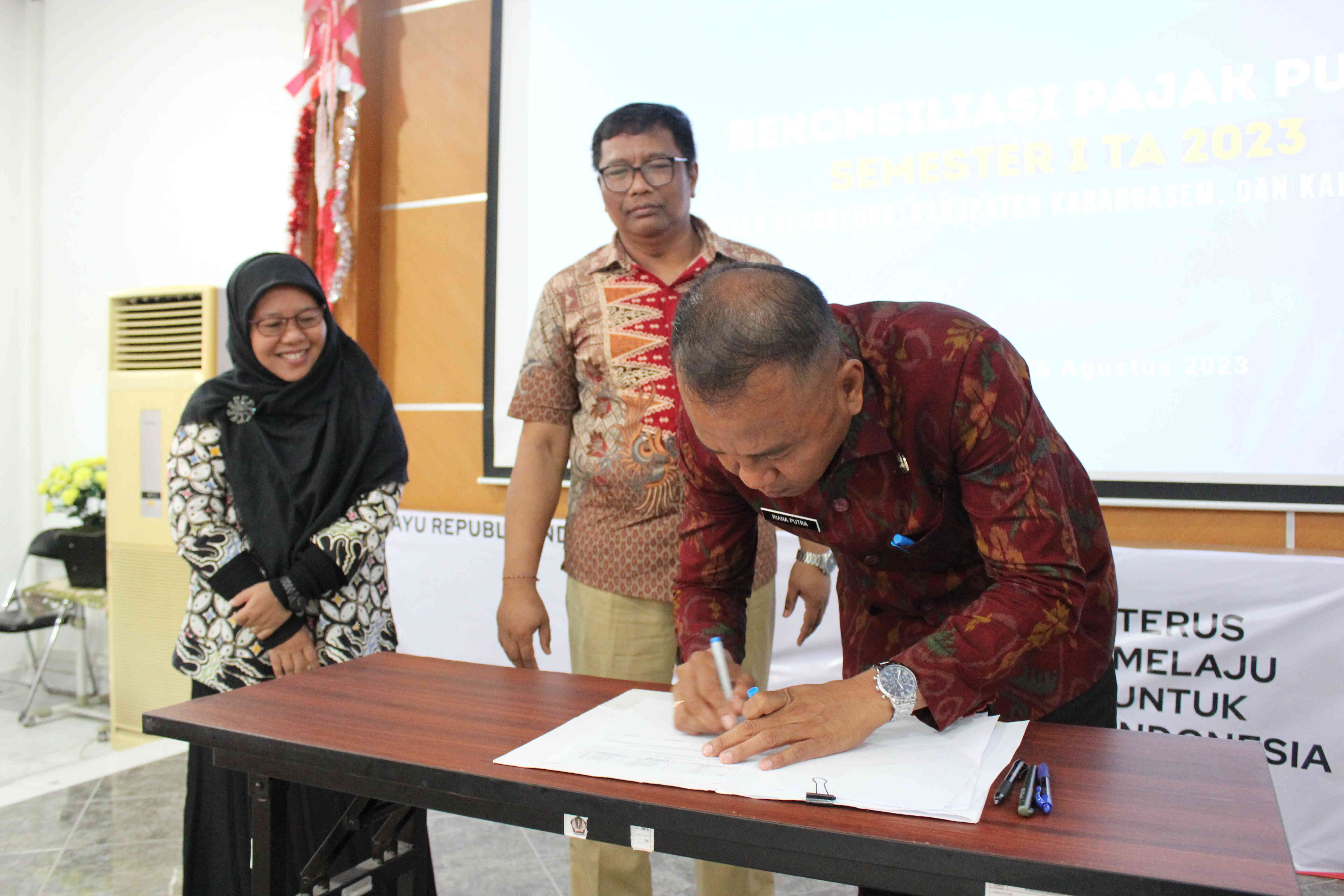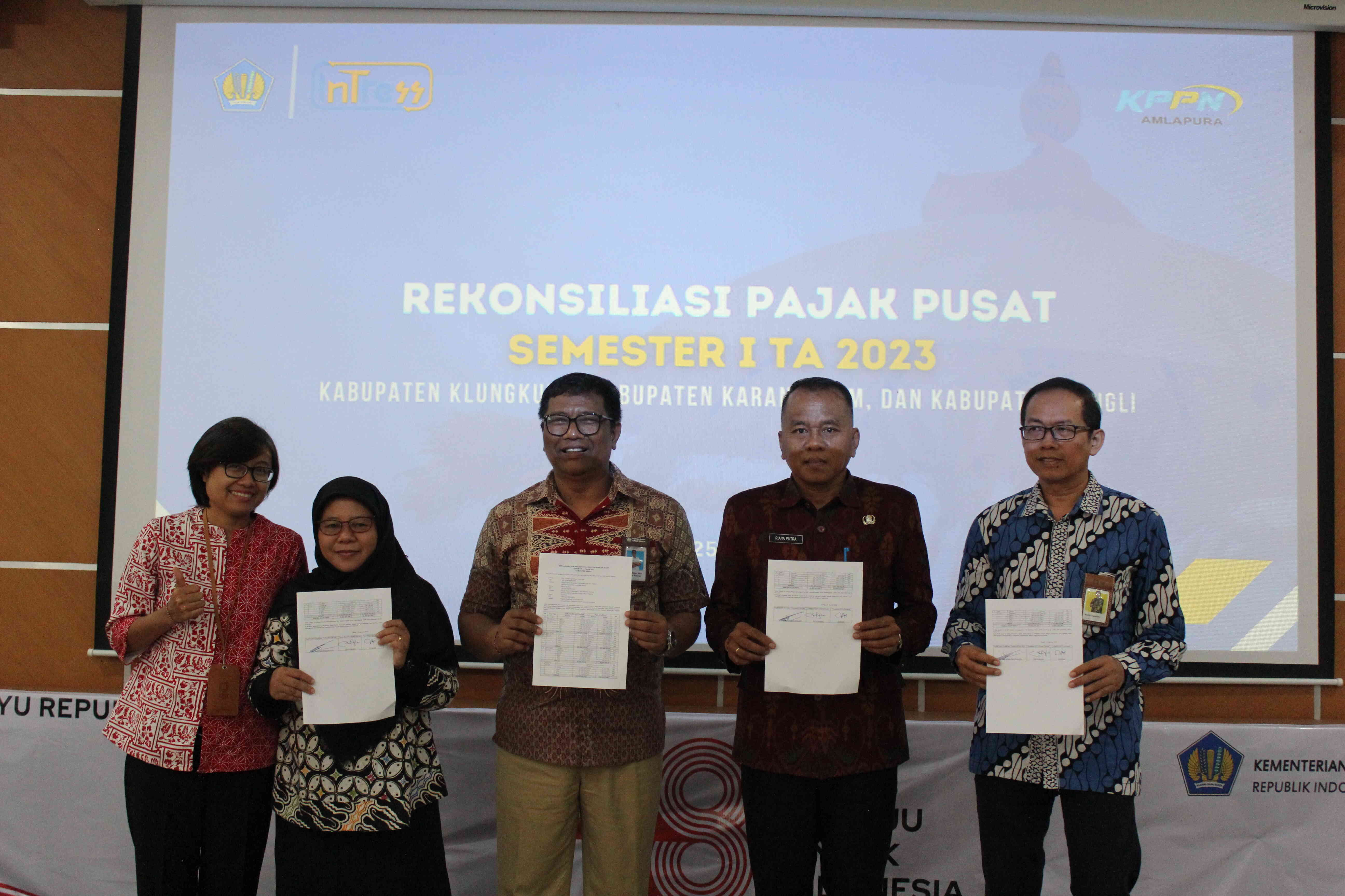 Kantor Pelayanan Pajak (KPP) Pratama Gianyar berkolaborasi dengan Kantor Pelayanan Perbendaharaan Negara (KPPN) Amlapura, Pemerintah Daerah Kabupaten Klungkung, Bangli, dan Karangasem mengadakan kegiatan rekonsiliasi antara pemerintah daerah, KPPN, dan KPP atas Penyetoran Pajak Pusat ke Rekening Kas Umum Negara yang diselenggarakan di Aula KPPN Amlapura (Jumat, 25/8).