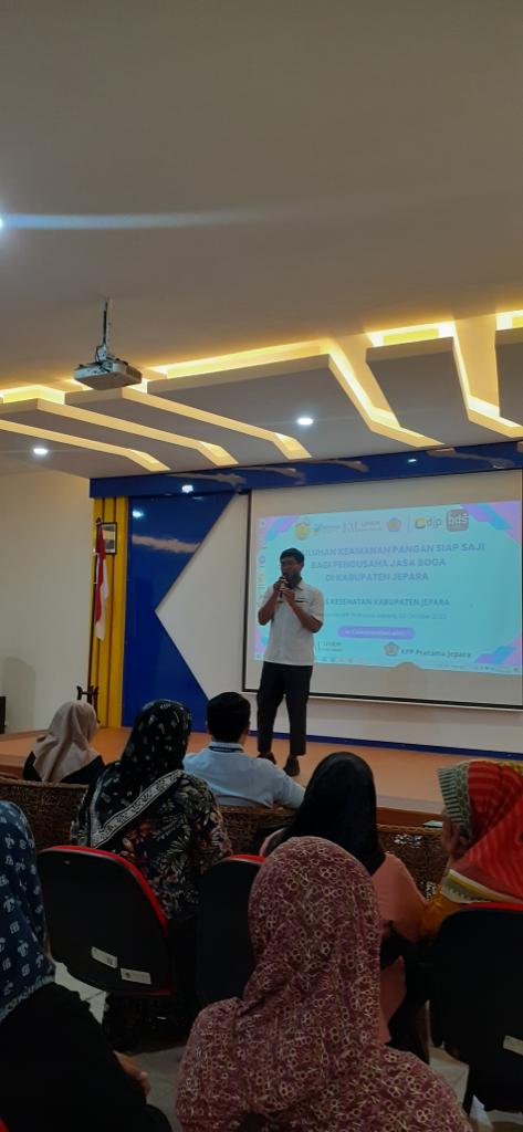 Paparan materi disampaikan oleh narasumber dari Dinas Kesehatan Kabupaten Jepara, Bapak Muhammad Al Farouq, SKM. Dalam paparannya Al Farouq menekankan pentingnya Sertifikat Laik Hygiene Sanitasi (SLHS) bagi para pelaku usaha Catering untuk keamanan para pelanggan. Dijelaskan, kegiatan serupa biasanya membutuhkan 3-4 hari pelatihan, namun pada kegiatan BDS kolaborasi ini dimampatkan serta diharapkan ada peningkatan hasil berupa sertifikat pelatihan yang merupakan 1 dari 3 syarat dalam mendapatkan SLHS.