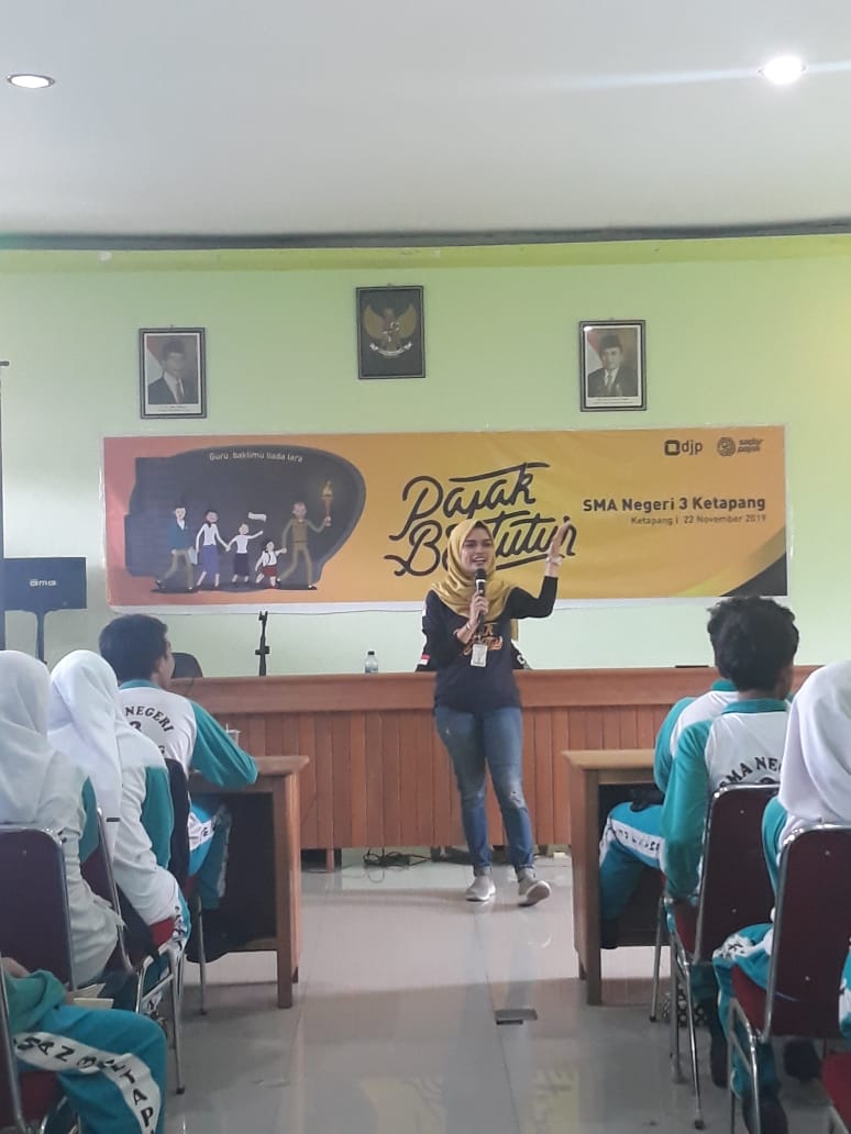 KPP Pratama Ketapang melaksanakan kegiatan Pajak Bertutur 2019 serentak di 3 sekolah yakni di SDN 05 Ketapang, SMPN 1 Ketapang, dan SMAN 3 Ketapang (Jumat, 22/11).