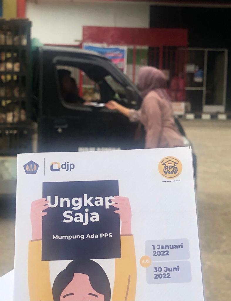 Selain melalui pembagian brosur kepada pengendara kendaraan, petugas KPP Pratama Kolaka juga melakukan pembagian brosur pada saat Pojok Pajak kepada pelaku usaha yang sedang berkonsultasi.