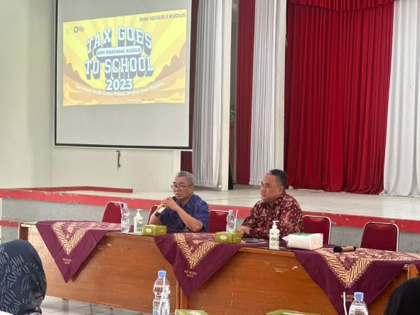 Kantor Pelayanan Pajak (KPP) Pratama Kudus bekerja sama dengan Sekolah Menengah Kejuruan (SMK) Negeri 01 Kudus menyelenggarakan kegiatan Tax Goes To School di SMK Negeri 01 Kudus, Kab. Kudus (Selasa, 22/8). Kegiatan ini diikuti oleh 107 siswa-siswi kelas XII Jurusan Akuntansi dan Perbankan Syariah. Materi yang diberikan adalah materi kesadaran pajak tingkat Sekolah Menengah Atas (SMA)/sederajat dan Kewajiban Perpajakan secara umum.