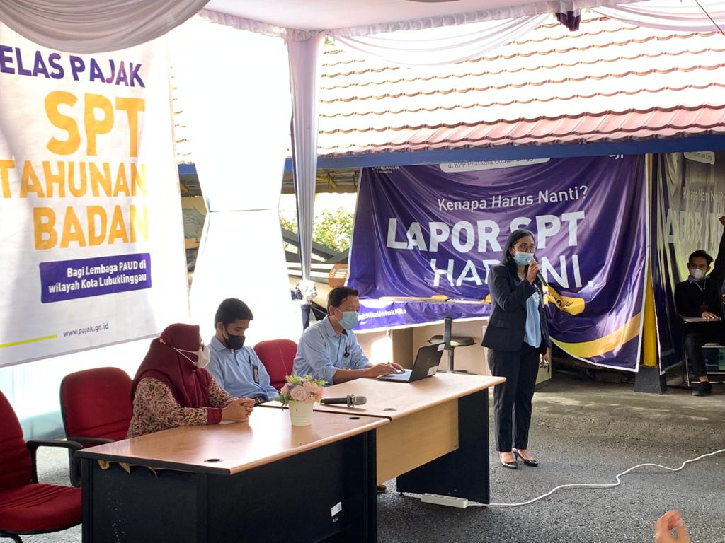 Kepala Seksi Pelayanan KPP Pratama Lubuklinggau Dian Fitriana mengungkapkan meski batas waktu pelaporan SPT Tahunan PPh Badan akan berakhir sebentar lagi, namun masih banyak Wajib Pajak Badan termasuk Lembaga PAUD yang belum paham cara pelaporan SPT Tahunan secara elektronik. “Untuk itu kami menggelar kelas pajak ini. Tentunya dengan menerapkan protokol kesehatan yang ketat," jelas Dian.