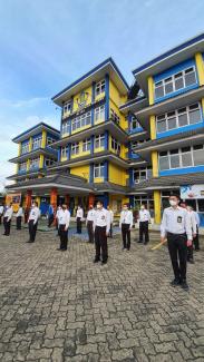 Dalam rangka memperingati Hari Pajak yang jatuh pada tanggal 14 Juli, KPP Pratama Metro menggelar Upacara Bendera bertempat di halaman Kantor KPP Pratama Metro, Lampung (Selasa, 14/7). Upacara Bendera yang dimulai pada pukul 07.00 WIB diikuti seluruh pegawai KPP Pratama Metro yang melakukan Work form Office (WFO) dan bertindak sebagai pembina upacara Kepala KPP Pratama Metro Agus Pramono. Kegiatan Upacara Bendera ini mencerminkan rasa kebangsaan dan kebanggaan sebagai pegawai Direktorat Jenderal Pajak (DJP).