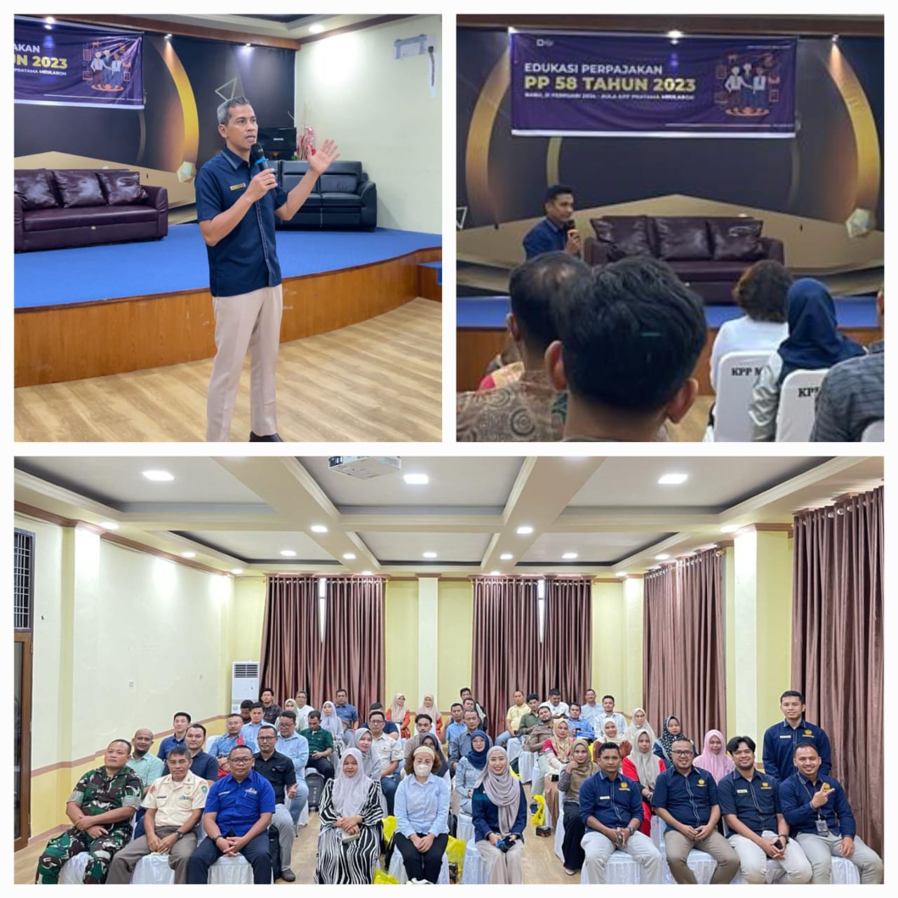 Kantor Pelayanan Pajak (KPP) Pratama Meulaboh melakukan sosialisasi yang mengupas tuntas ketentuan terbaru tentang tarif Pajak Penghasilan (PPh) Pasal 21 berdasarkan Peraturan Pemerintah (PP) Nomor 58 Tahun 2023 kepada wajib pajak yang terdaftar di wilayah kerja KPP Pratama Meulaboh yang bertempat di Aula KPP Pratama Meulaboh (Rabu, 21/2).