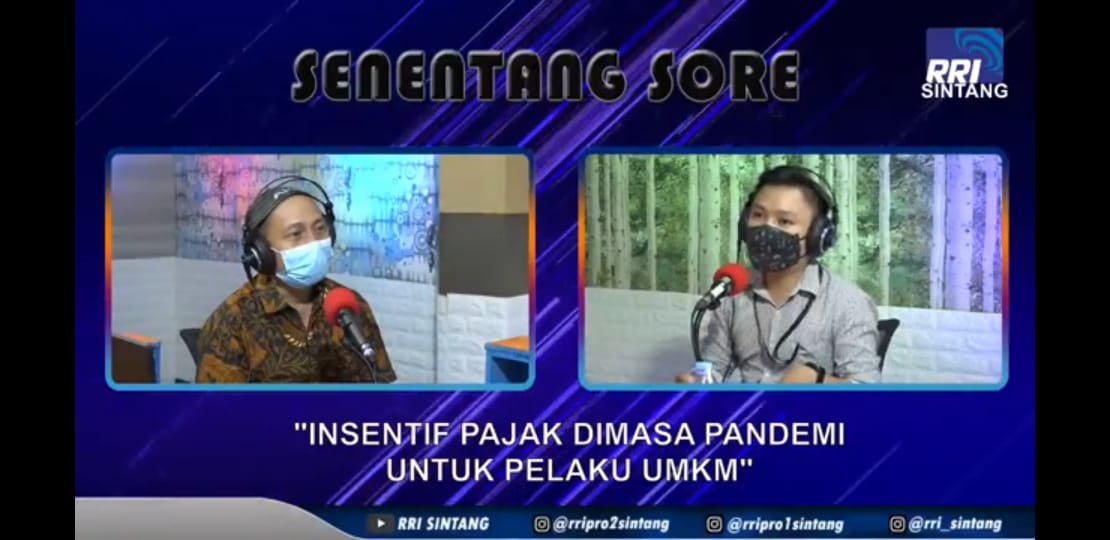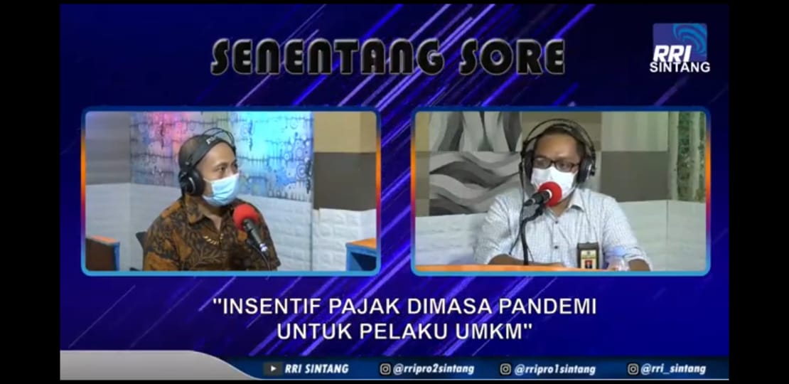 KPP Pratama Sintang bersama Radio Republik Indonesia (RRI) Sintang melaksanakan siaran langsung radio dan youtube dengan judul Senentang Sore - Insentif Pajak Di masa Pandemi Untuk Pelaku UMKM.