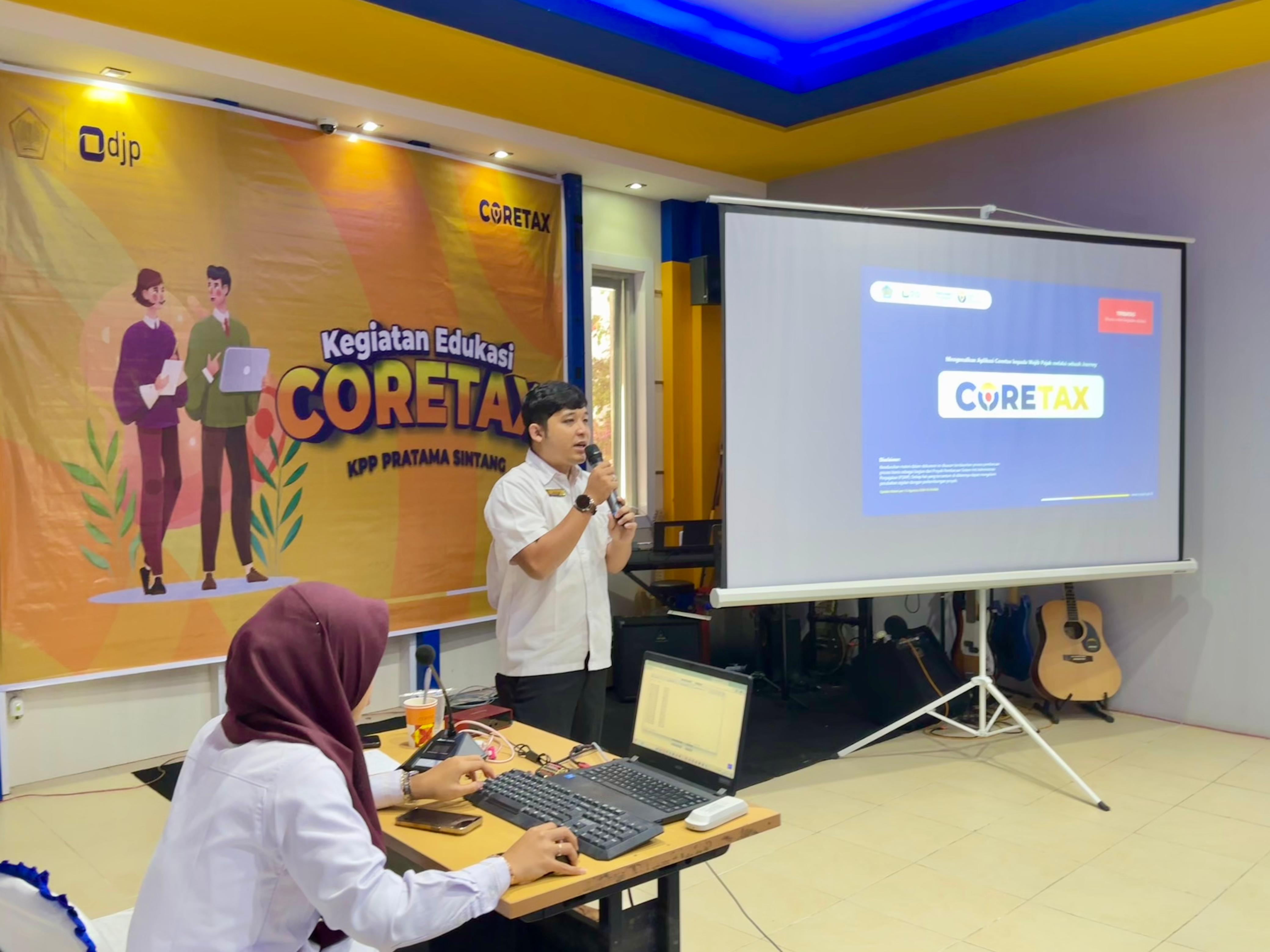Kantor Pelayanan Pajak (KPP) Pratama Sintang menyelenggarakan kegiatan Edukasi Coretax Tahap I kepada Wajib Pajak. Kegiatan yang diselenggarakan di Aula KPP Pratama Sintang ini telah berlangsung selama 5 (lima) hari, mulai dari 26 Agustus sampai dengan 3 September 2024 dan rencananya akan berlangsung selama 10 (sepuluh) hari (26/8). Kegiatan Edukasi Coretax diikuti oleh kurang lebih 20 (dua puluh) Wajib Pajak setiap harinya dengan total sekitar 200 Wajib Pajak.