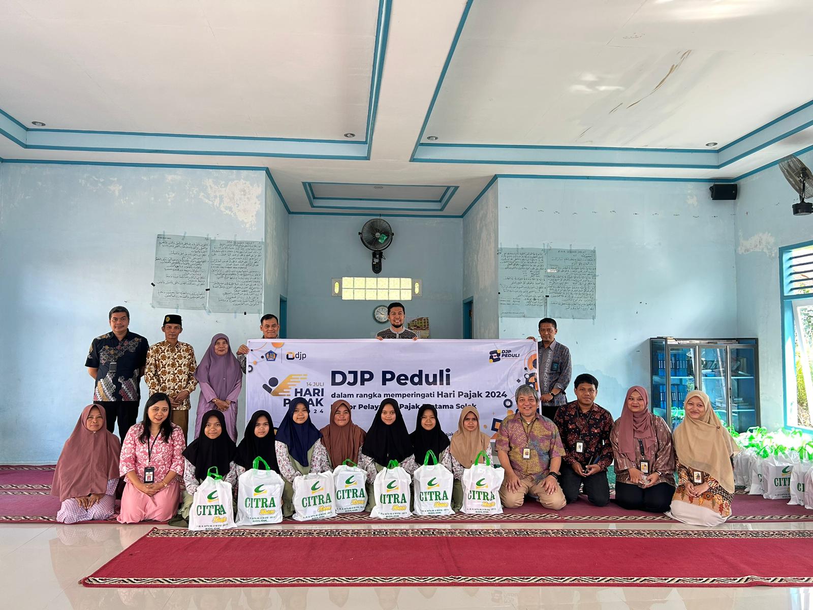 Kantor Pelayanan Pajak (KPP) Pratama Solok menggelar kegiatan bakti sosial dalam rangkaian acara Hari Pajak 2024 dengan tema DJP Peduli (Jumat, 12/7). Kegiatan ini bertujuan untuk memberikan kontribusi positif kepada masyarakat, khususnya anak-anak yang membutuhkan.