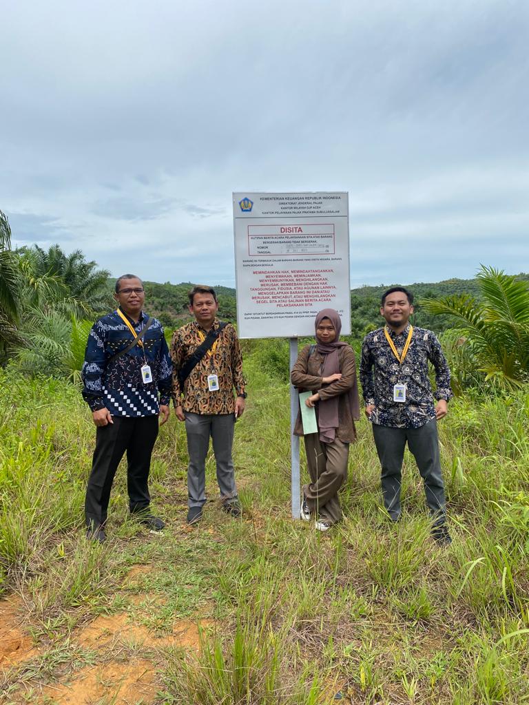 Tim Penagihan Kantor Pelayanan Pajak (KPP) Pratama Subulussalam melaksanakan sita aset penangung pajak (Selasa, 18/7). Shafira Agustina selaku Juru Sita Pajak Negara (JSPN) didampingi Muhamad Syafei selaku Kepala Kantor dan Doli Rafianto selaku Kepala Seksi Pemeriksaan, Penagihan, dan Penilaian melakukan penyitaan sebidang tanah perkebunan di Kecamatan Sultan Daulat, Kota Subulussalam, Provinsi Aceh.