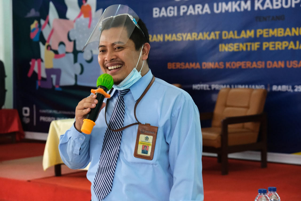 Kantor Pelayanan Pajak (KPP) Pratama Probolinggo dan KP2KP Lumajang bekerja sama dengan Dinas Koperasi dan Usaha Mikro Lumajang mengadakan sosialisasi perpajakan bagi para pelaku Usaha Mikro Kecil Menengah (UMKM) di wilayah Kabupaten Lumajang (Rabu, 25/11). Acara yang dilangsungkan di Hotel Prima Lumajang ini dihadiri langsung oleh Kepala Dinas Koperasi dan Usaha Mikro Kabupaten Lumajang, Suharwoko.
