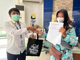 Selain itu, KPP Pratama Purbalingga juga mengapresiasi dan mengucapkan terima kasih kepada wajib pajak pertama yang melaporkan SPT Tahunan 2022, yakni kepada Miarto seorang pelaku UMKM yang melaporkan SPT Tahunan melalui e-Form serta Mawarti seorang pensiunan yang malakukan pelaporan SPT Tahunan secara manual.