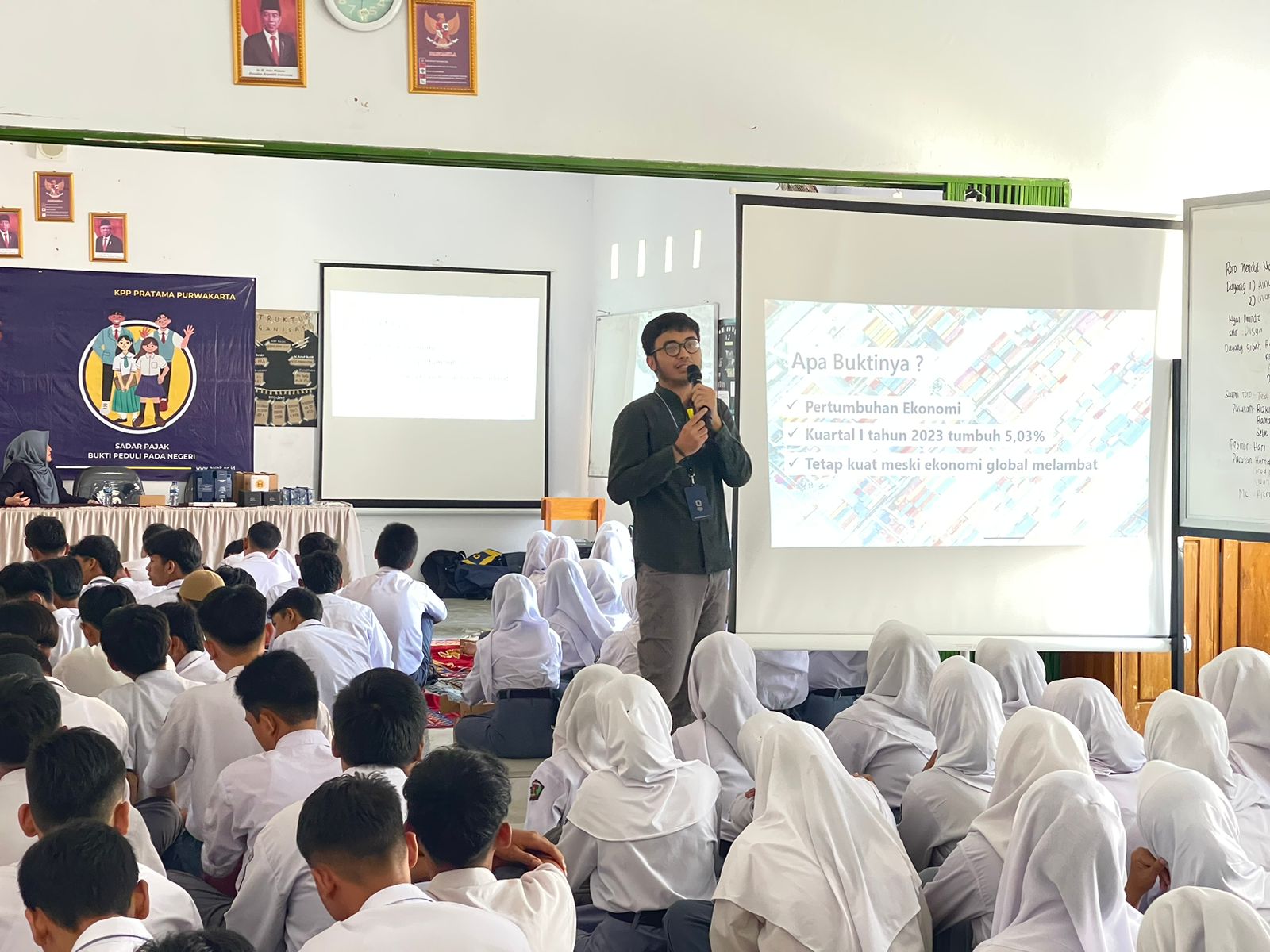 Kegiatan yang diikuti oleh 200 siswa-siswi ini dimulai sejak pukul 09.00 hingga 12.00 WIB. Narasumber pada kegiatan ini adalah Penyuluh Pajak KPP Purwakarta, M. Fadhil Zuliananda dan Septhiana Bella Pertiwi.