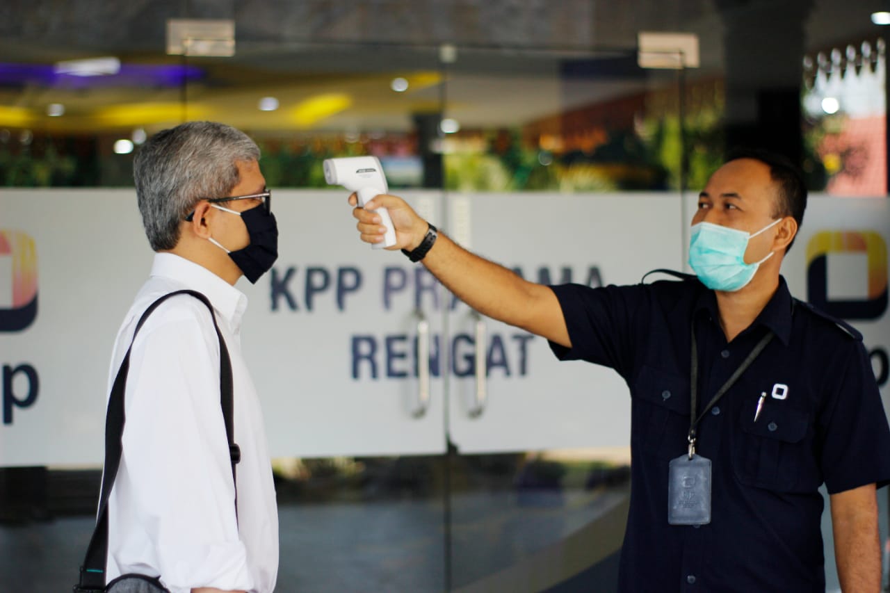 KPP Rengat pastikan siap menyambut kembali wajib pajak dengan tetap menerapkan protokol kesehatan serta prosedur pelayanan perpajakan tatap muka dalam kenormalan baru. Kami menyediakan wastafel untuk cuci tangan berada di luar gedung KPP Pratama Rengat. Sebelum memasuki gedung kantor, seluruh wajib pajak wajib menggunakan masker, mencuci tangan, serta melakukan tes pengecekan suhu badan.