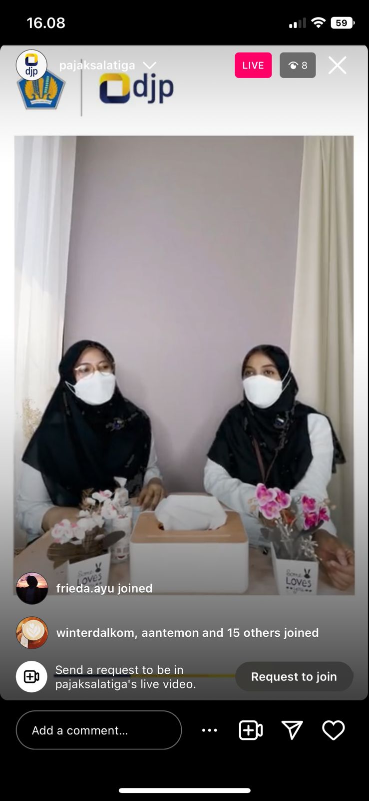 Live IG ini berlangsung selama kurang lebih 40 menit. Wajib pajak yang tidak sempat mengikuti live IG ini, masih dapat menonton rekaman dari live IG tersebut yang telah disiarkan pada akun Instagram KPP Pratama Salatiga di @pajaksalatiga.