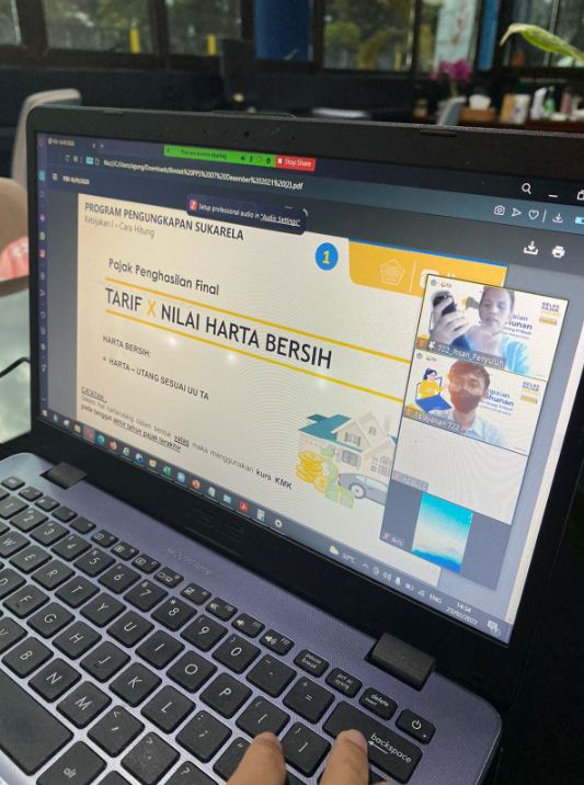 Kelas Pajak PPS ini diikuti oleh belasan wajib pajak yang mayoritas merupakan Wajib Pajak Badan. Fungsional Penyuluh Pajak Muhammad Ihsan selaku narasumber dan dimoderatori oleh Mohamad Agung Sasono yang merupakan Tim Penyuluh, menjelaskan tentang Undang-Undang Harmonisasi Peraturan Perpajakan secara sekilas, latar belakang adanya Program Pengungkapan Sukarela, apa saja ketentuannya, tarif dalam Kebijakan I dan Kebijakan II PPS, hingga mencontohkan perhitungan dalam PPS. Tak hanya itu Agung memutar video tutorial penyampaian Surat Pemberitahuan Penyampaian Harta (SPPH) melalui laman https://djponline.pajak.go.id.