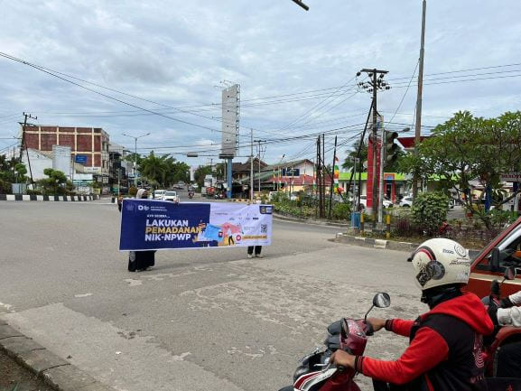 Pegawai KPP Samarinda Ilir yang bertugas melakukan kampanye simpatik juga memberikan edukasi perpajakan kepada wajib pajak yang melintas terkait pelaporan SPT Tahunan dan pemadanan NIK-NPWP.