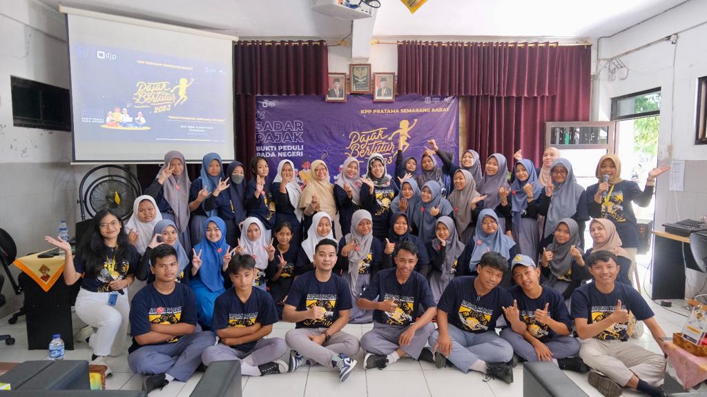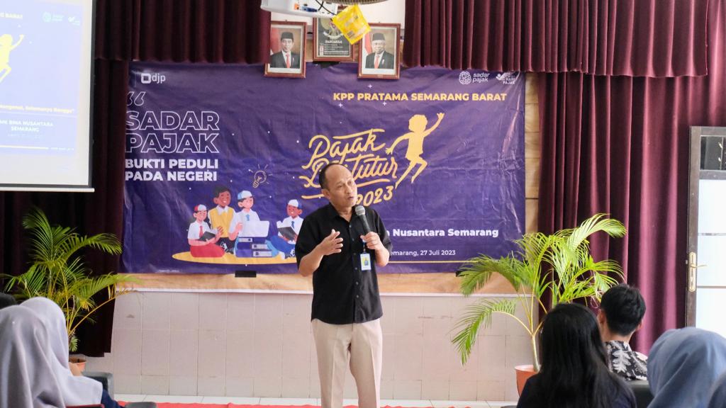 Kantor Pelayanan Pajak (KPP) Pratama Semarang Barat melaksanakan kegiatan Pajak Bertutur yang dilaksanakan serentak seluruh Indonesia di Sekolah Menengah Kejuruan (SMK) Bina Nusantara Semarang, Kota Semarang (Kamis, 27/7).