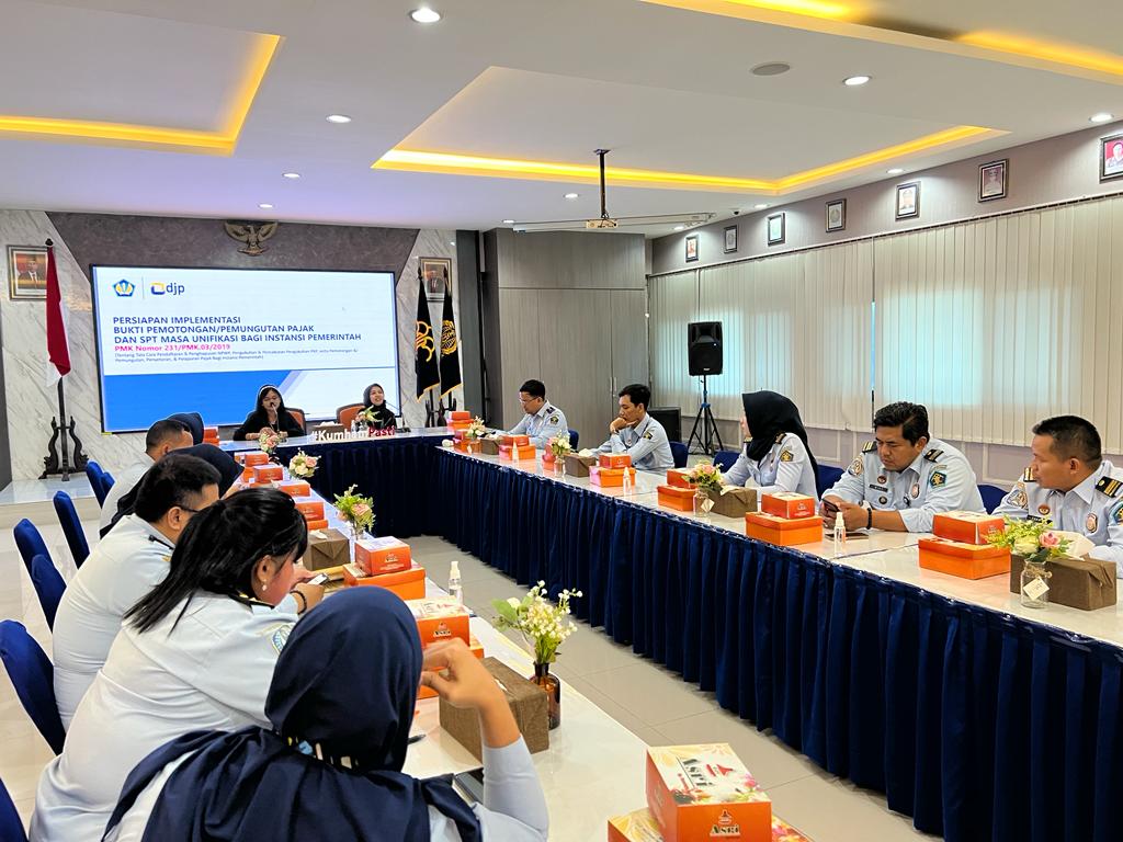 Tim Penyuluh Kantor Pelayanan Pajak (KPP) Pratama Semarang Barat memenuhi undangan sosialisasi Kantor Imigrasi Kelas I TPI Semarang Ditjen Imigrasi Kementerian Hukum Dan Hak Asasi Manusia RI terkait penerapan e-Bupot unifikasi instansi pemerintah di Aula Punakawan Kantor Imigrasi Kelas I TPI Semarang (Selasa, 18/7).