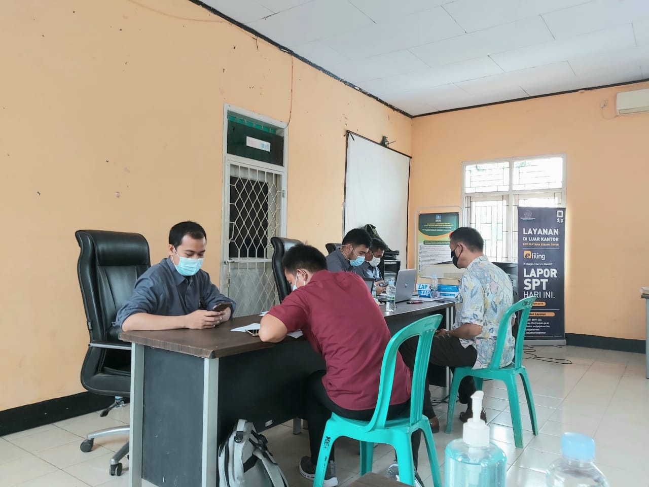 Kantor Kecamatan Bojonegara turut membantu terlaksananya acara layanan SPT Tahunan dengan menyediakan sarana dan prasarana seperti ruangan, meja, kursi, hand sanitizer, hingga sarana internet.