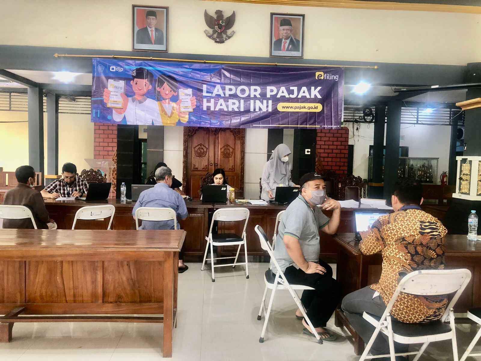Kantor Pelayanan Pajak (KPP) Pratama Sidoarjo Utara mengadakan kegiatan asistensi pengisian SPT Tahunan PPh secara daring di kantor Kecamatan Waru (Selasa, 14/3). Kegiatan ini dikemas dalam bentuk pojok pajak yang memberikan layanan asistensi pengisian SPT Tahunan melalui fitur e-Filing.